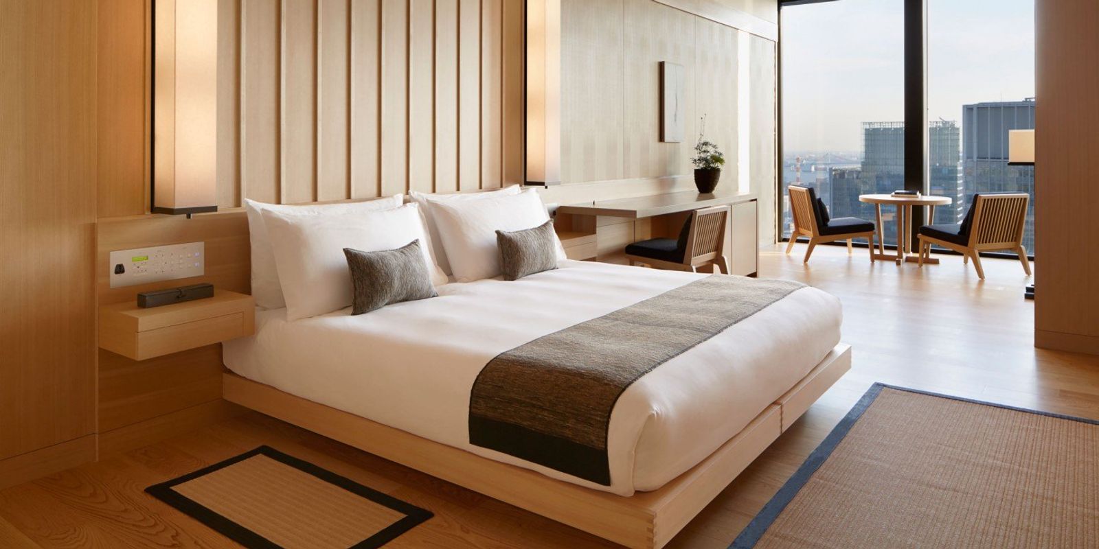Отель Aman Tokyo занимает 6 верхних этажей 38-этажной башни Otemachi Tower, тем самым предоставляя гостям возможность любоваться головокружительными панорамами видами на Токио сквозь большие окна.