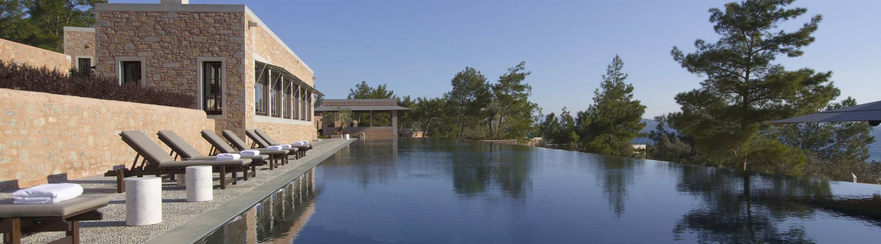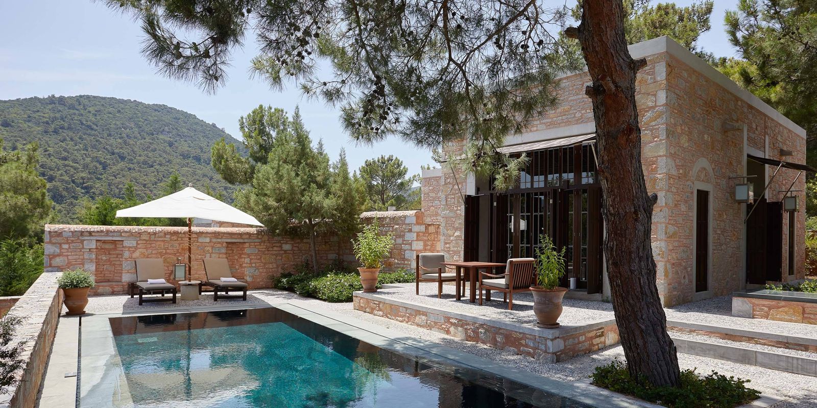 Отель Amanruya в Бодруме представляет собой комплекс коттеджей, построенных в стиле турецкой деревни на склонах живописного холма, который спускается к галечному пляжу и Эгейскому морю. Каменные коттеджи с садом и бассейнами окружены сосновым лесом и вековыми оливковыми деревьями, а архитектура и интерьеры сочетают османский и средиземноморский стили.