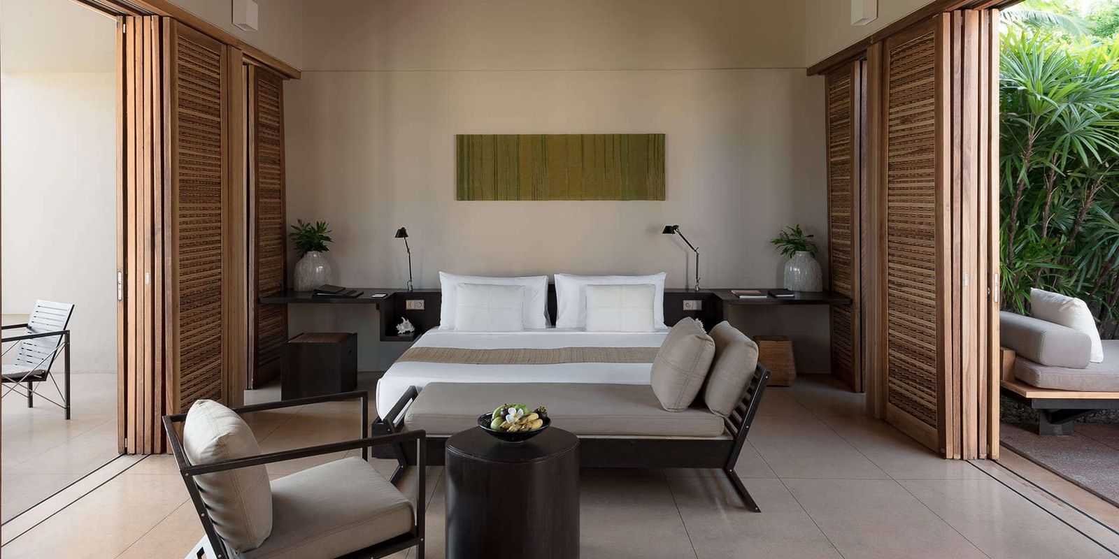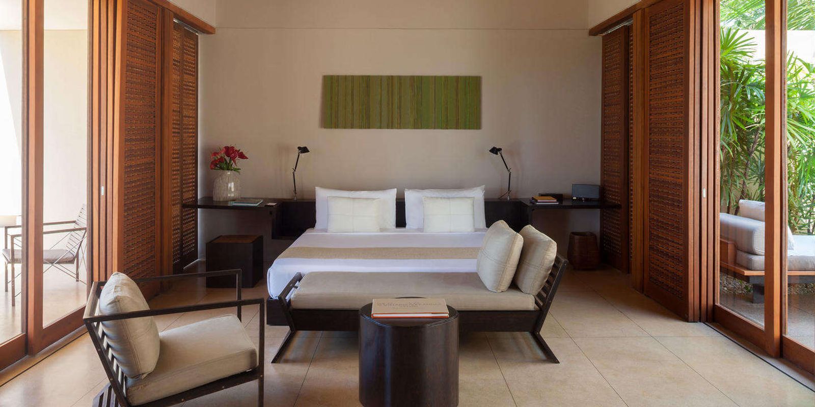 Резиденции для гостей предусмотрены на берегу, с завораживающими видами на морскую гладь, и в саду — с высокими окнами и видом на кокосовые рощи.