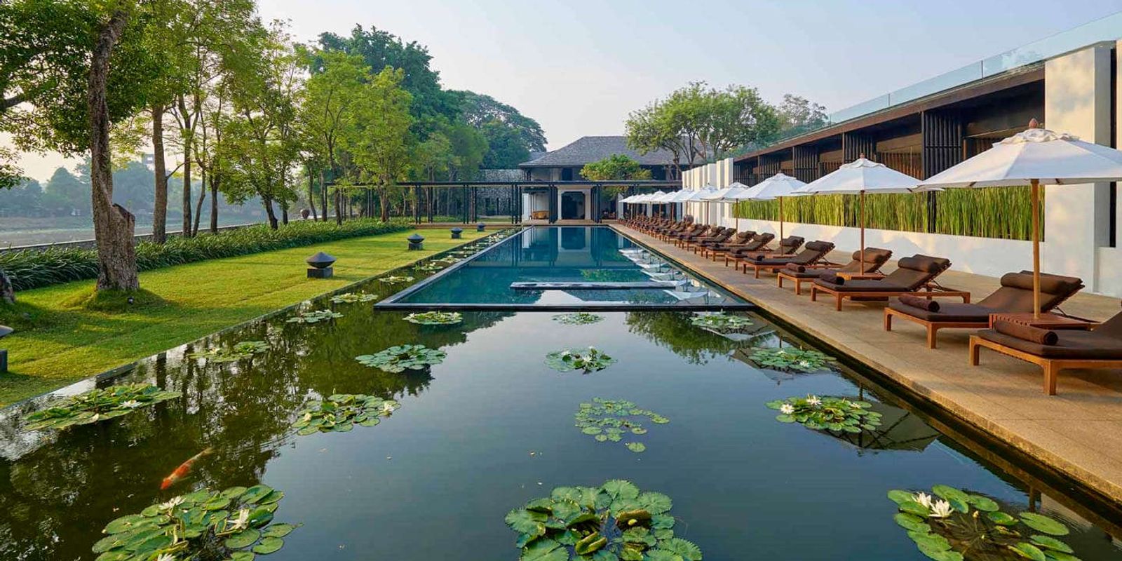 Элегантное здание курорта Anantara Chiang Mai с большим бассейном и садом расположено прямо в городе, на берегу реки Пинг. Рядом — старый город со множеством храмов, наследие средневекового исторического государства Ланна.