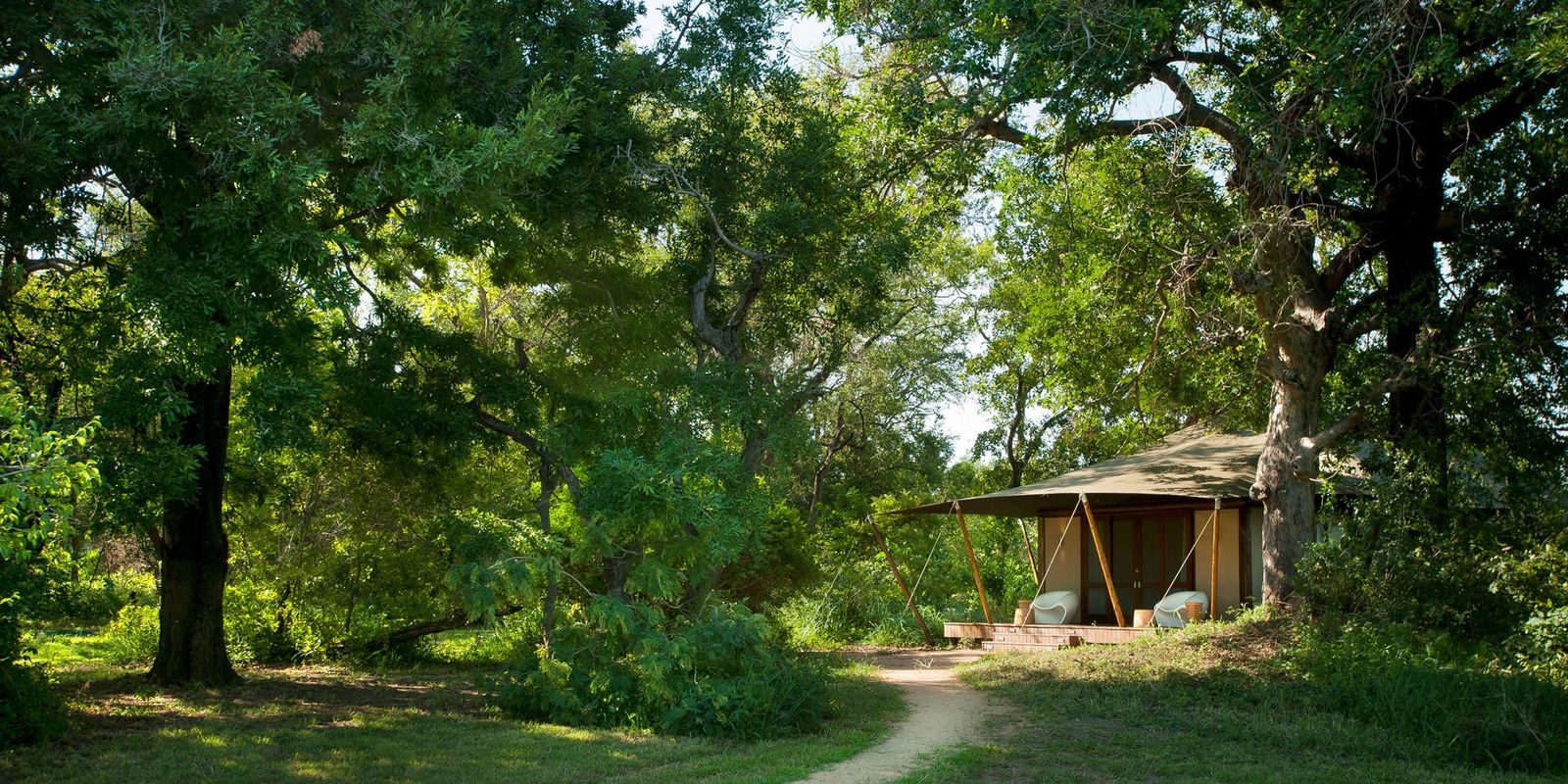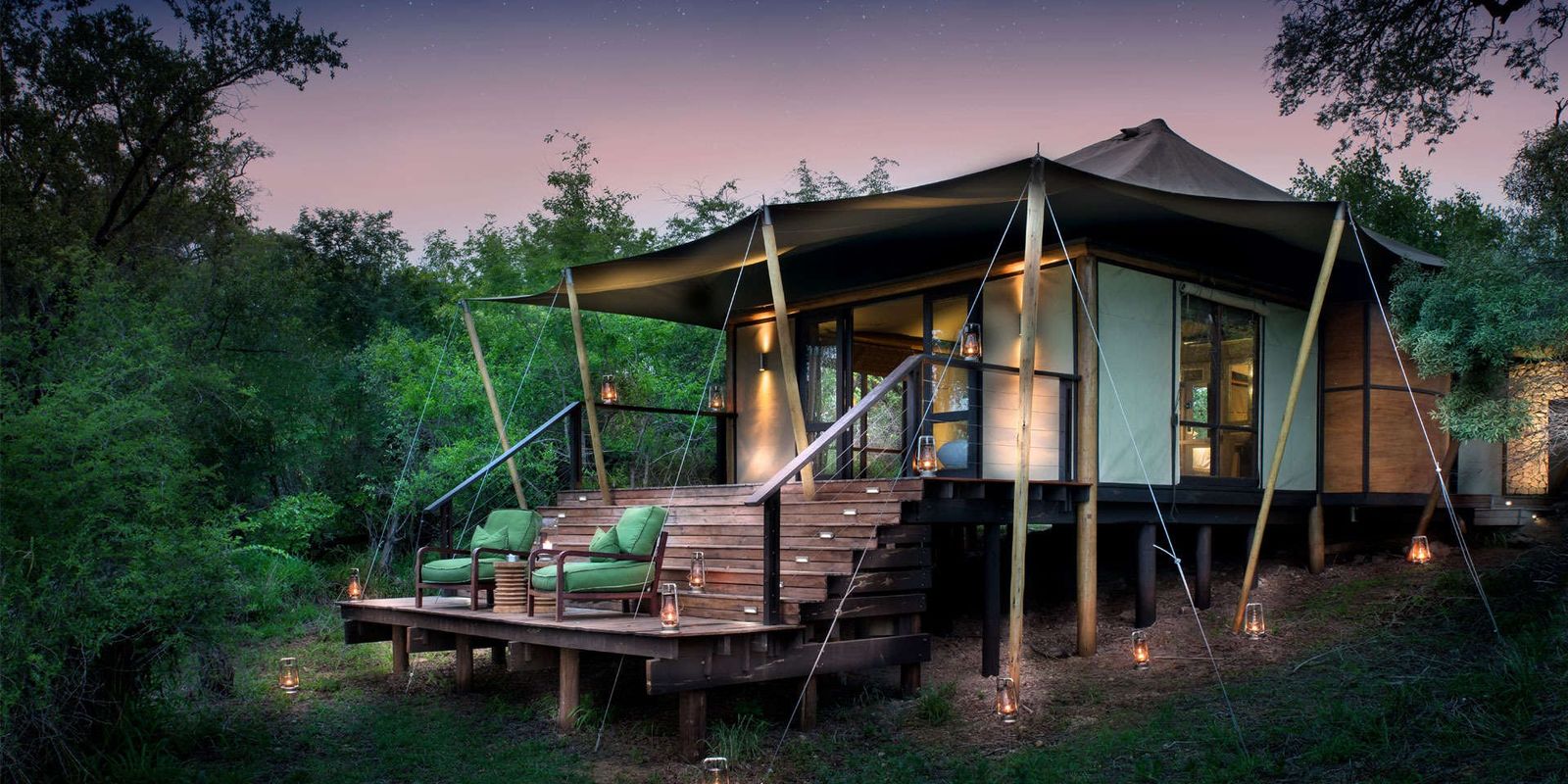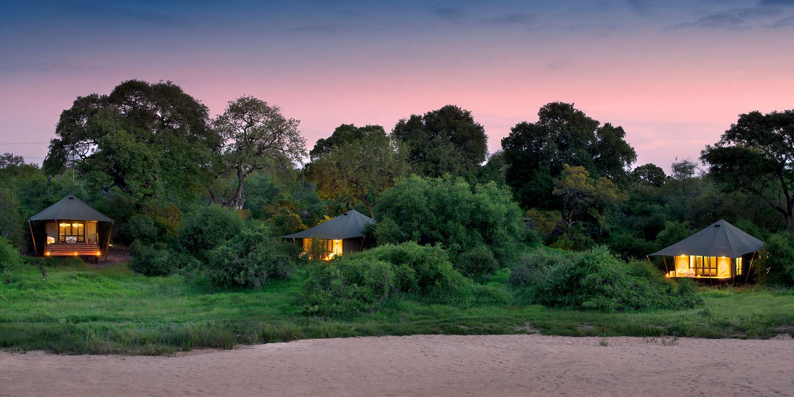 Роскошный палаточный лагерь на реке Тимбавати: всего 9 тентов с современным дизайном, кондиционером и ванной комнатой. Просторные террасы-палубы спускаются прямо к реке и спроектированы так, чтобы сливаться с деревьями, минимизируя влияние на окружающую среду.