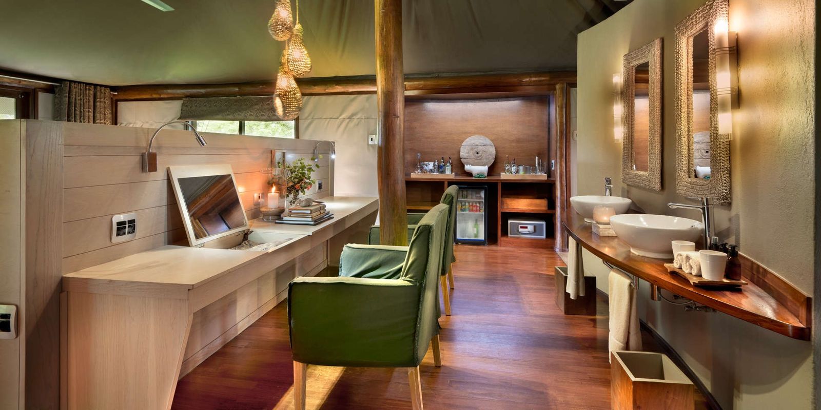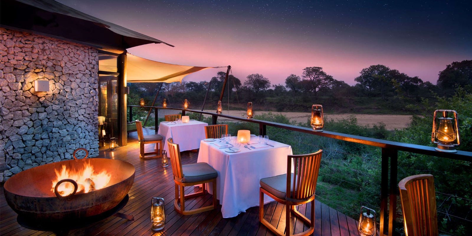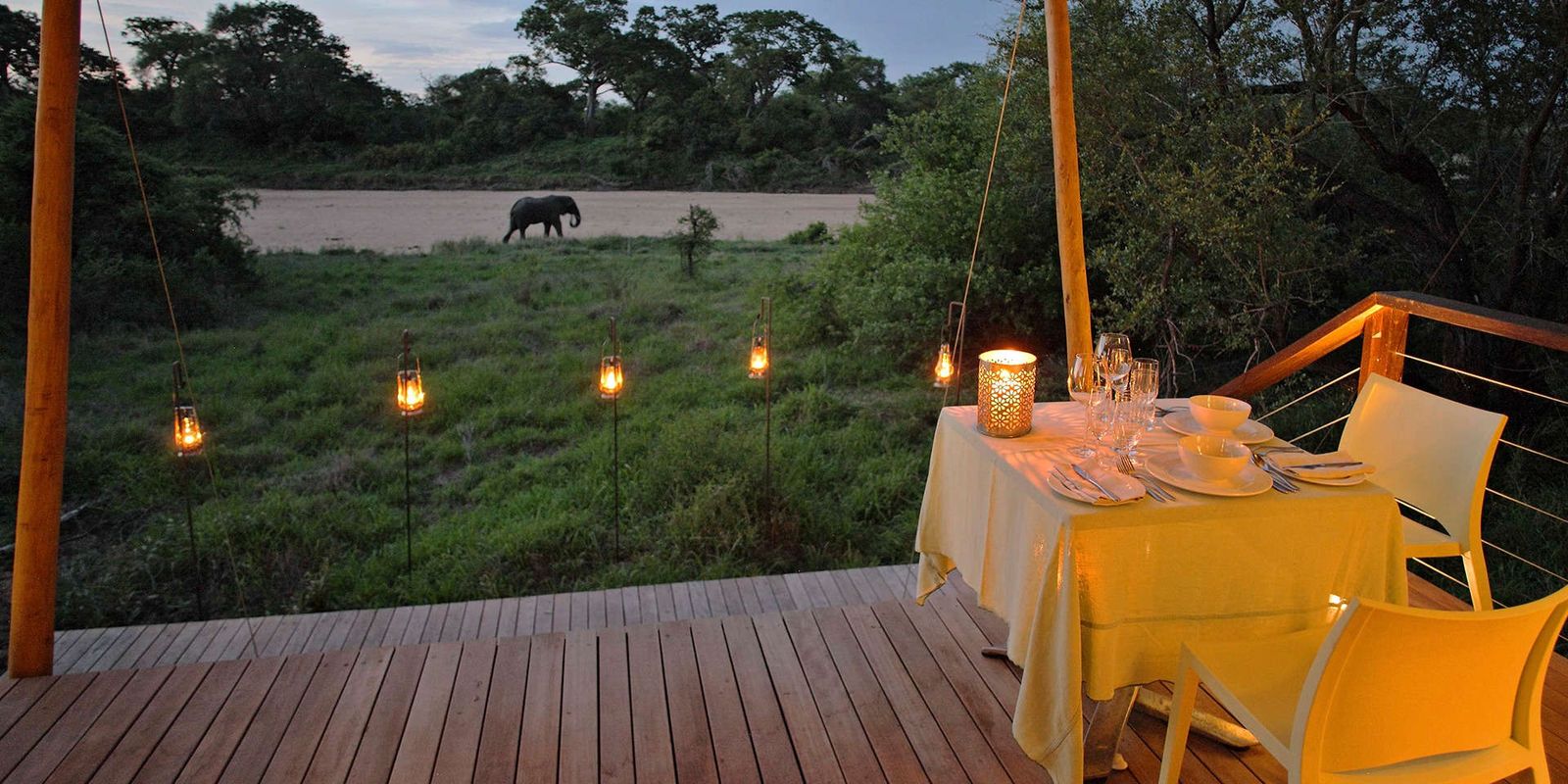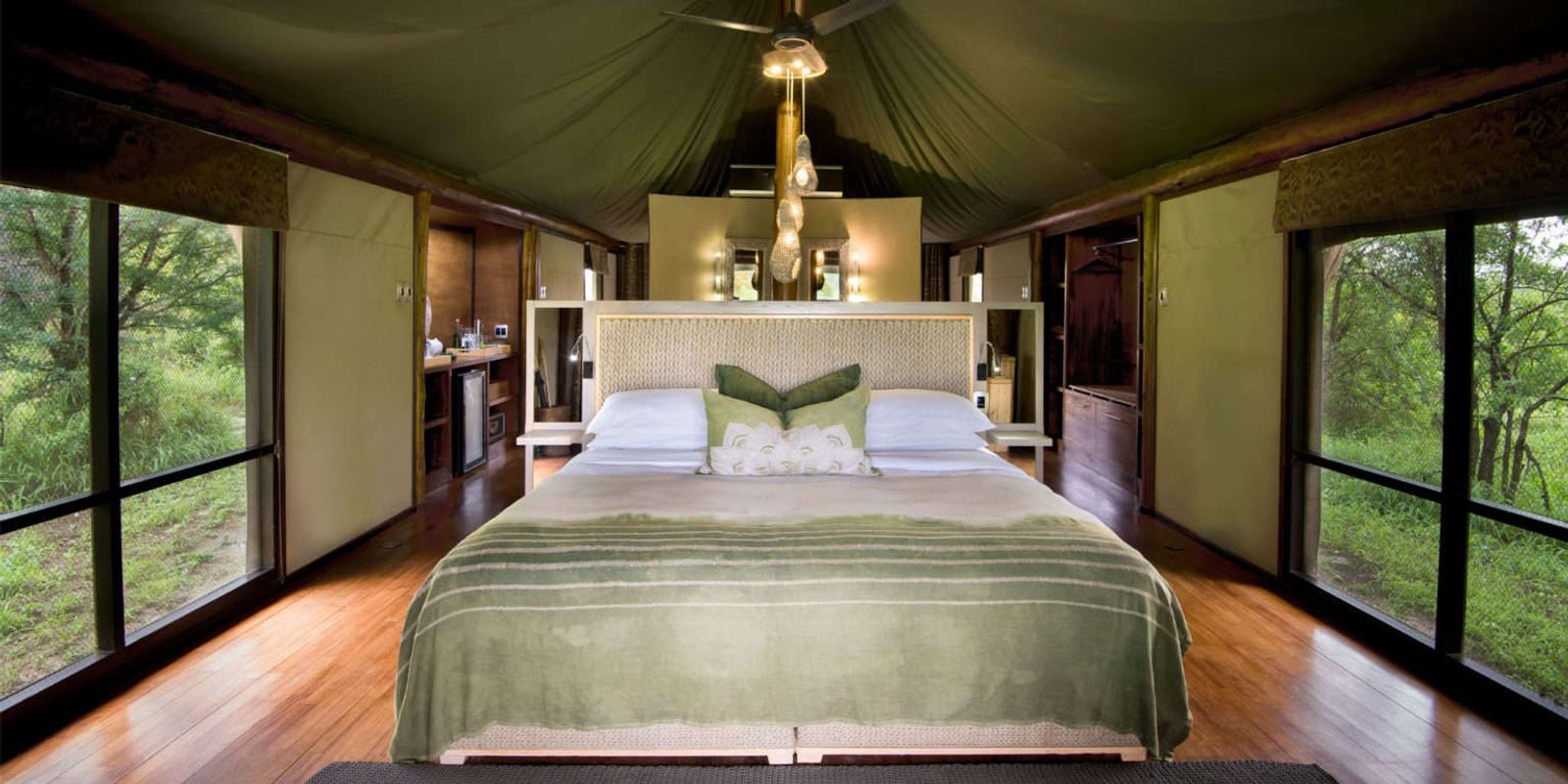 Роскошный палаточный лагерь на реке Тимбавати: всего 9 тентов с современным дизайном, кондиционером и ванной комнатой. Просторные террасы-палубы спускаются прямо к реке и спроектированы так, чтобы сливаться с деревьями, минимизируя влияние на окружающую среду.