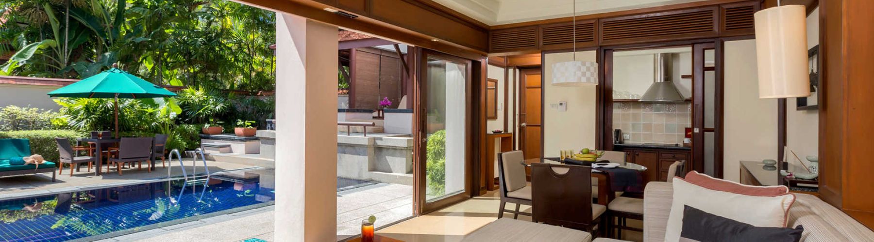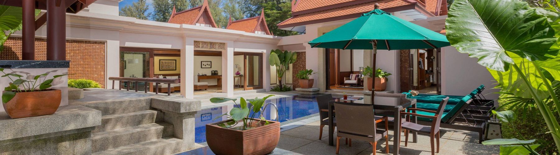Виллы Banyan Tree Phuket расположены на берегу залива Банг Тао, у белоснежного пляжа, среди густой зелени садов и кокосовых пальм. Они являются частью курортного комплекса Laguna Phuket.