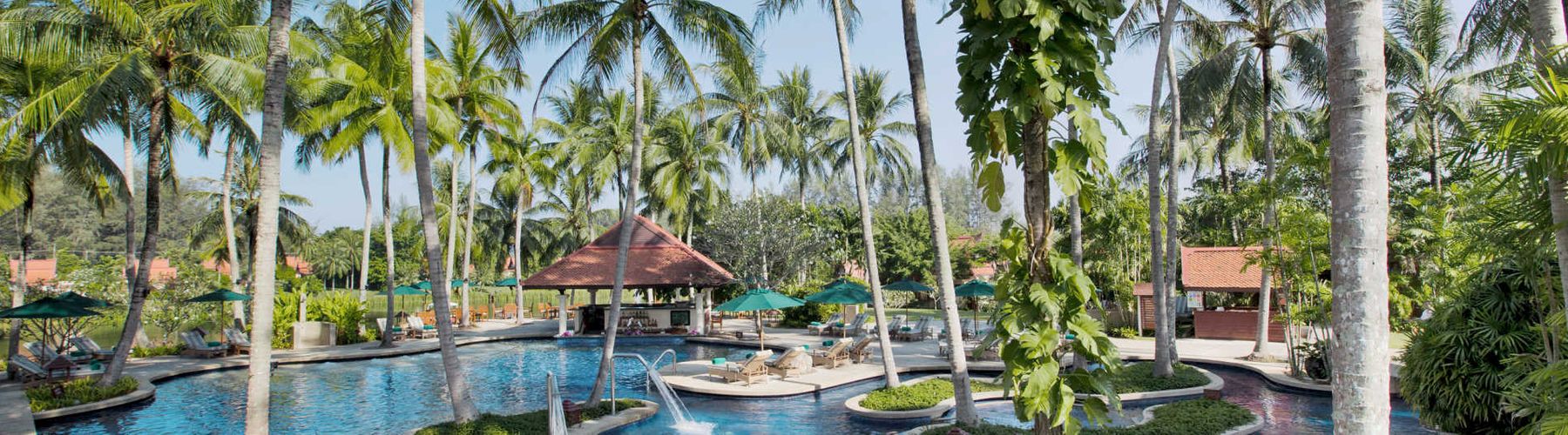 К услугам гостей — виллы с бассейнами, напоминающие тайские храмы, СПА-центр The Sanctuary, несколько ресторанов, частный пляж, бассейн, тренажерный зал, детская площадка и площадка для пикника. Рядом с отелем есть 18-луночное гольф-поле Laguna Golf Phuket и торговый центр Canal Village Shopping Centre.