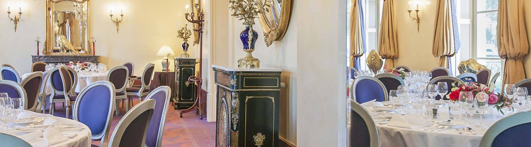 К услугам гостей — ресторан французской кухни Le Chat Botté, отмеченный звездой «Мишлен», ресторан тайской кухни Le Patara, где имеется специальный стол для гостей шеф-повара. Зимой гости отеля могут провести время в тихом атриуме, а летом — на расположенной у озера открытой террасе.
