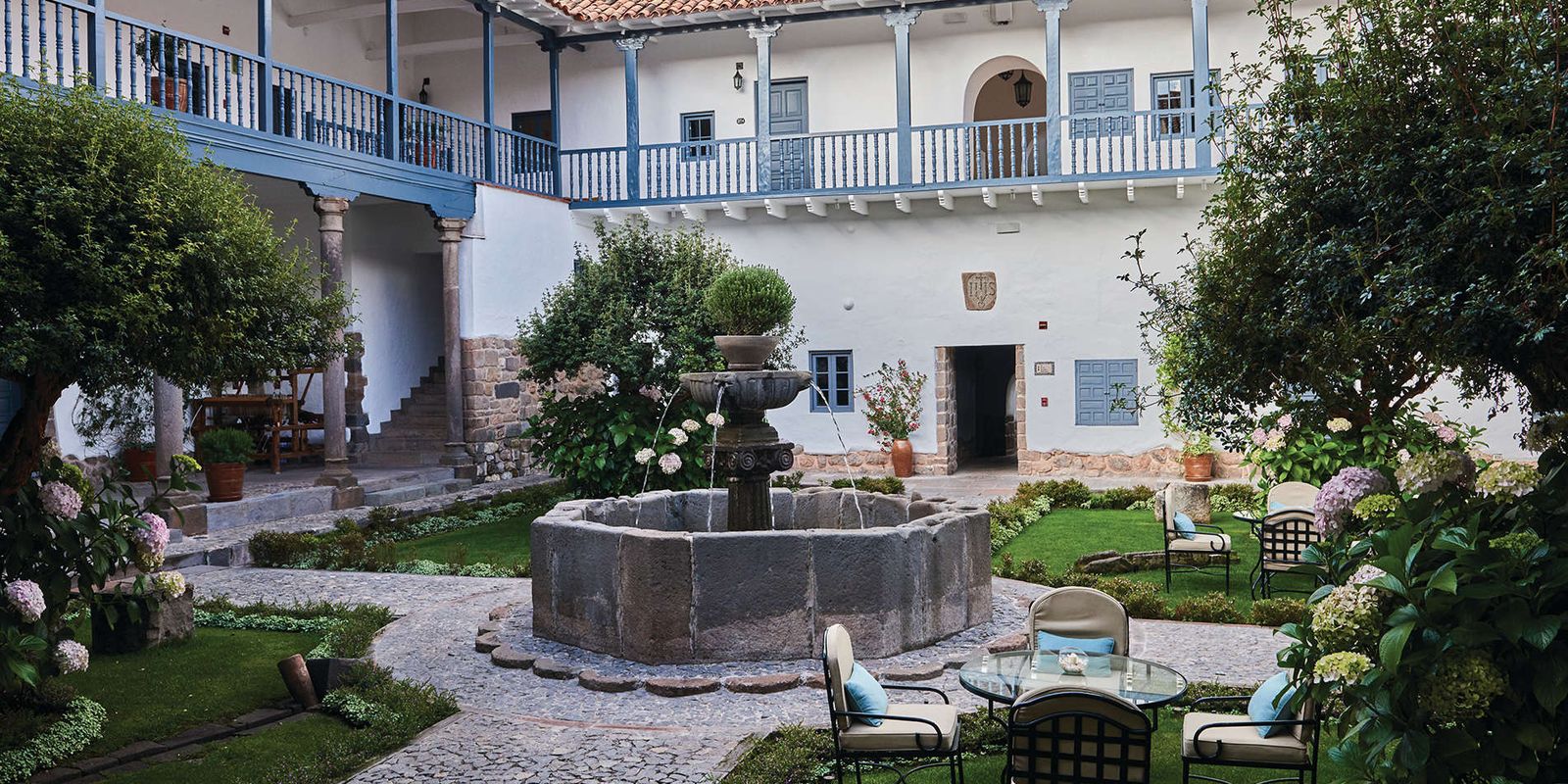Отель Belmond Palacio Nazarenas построен на фундаменте инков с колониальными фресками, позолоченной мебелью и мраморными ванными комнатами. Это настоящий портал в другой мир. Террасы на галереях, обнимающих особняк, усажены местными цветами и пряными травами.