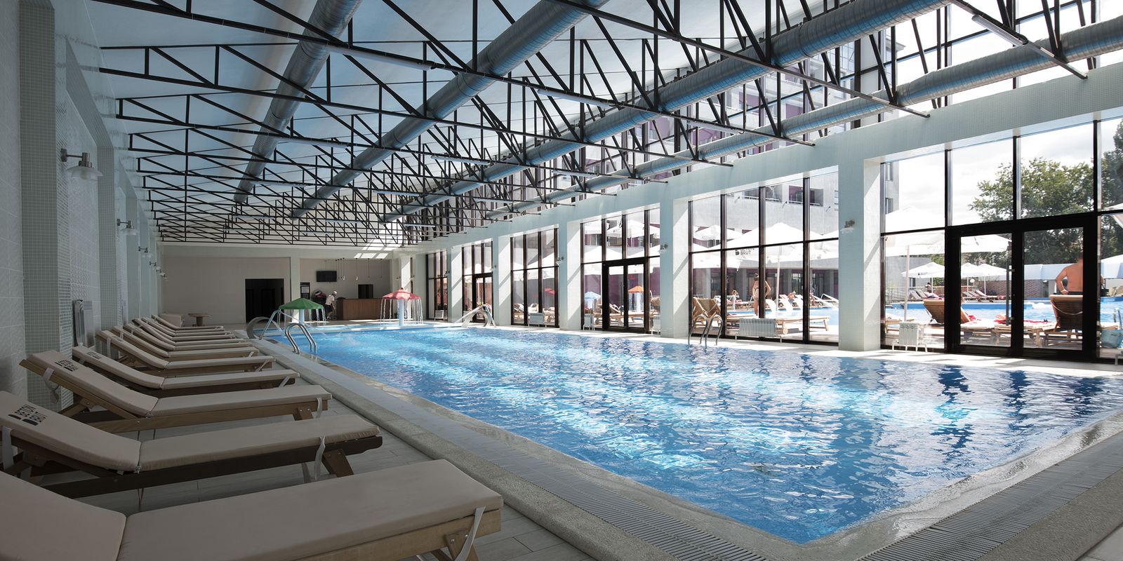 К услугам гостей — 173 номера различных категорий с балконом или террасой, панорамный ресторан BRUT8, бар, спа-комплекс с бассейном, открытый бассейн, кинозал, детские комнаты и тренажерный зал.