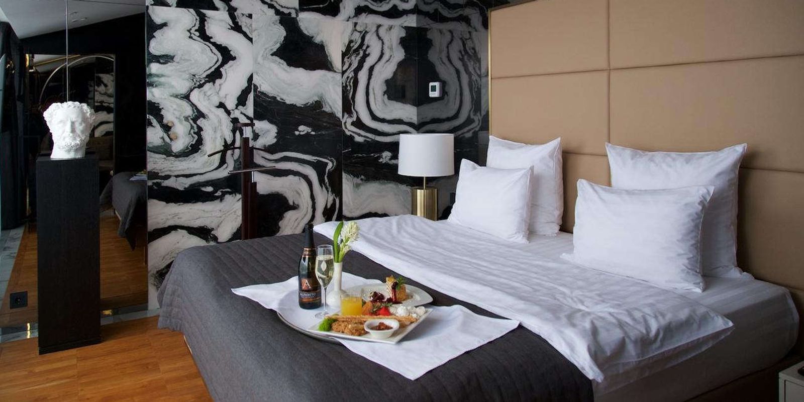 Просторный и наполненный светом атриум, стильный интерьер ресторана NOK, «мыслящие» бюсты древнегреческих философов в баре Sculptors и спа-салон Nero создают атмосферу комфорта для идеального отдыха в Северной столице.