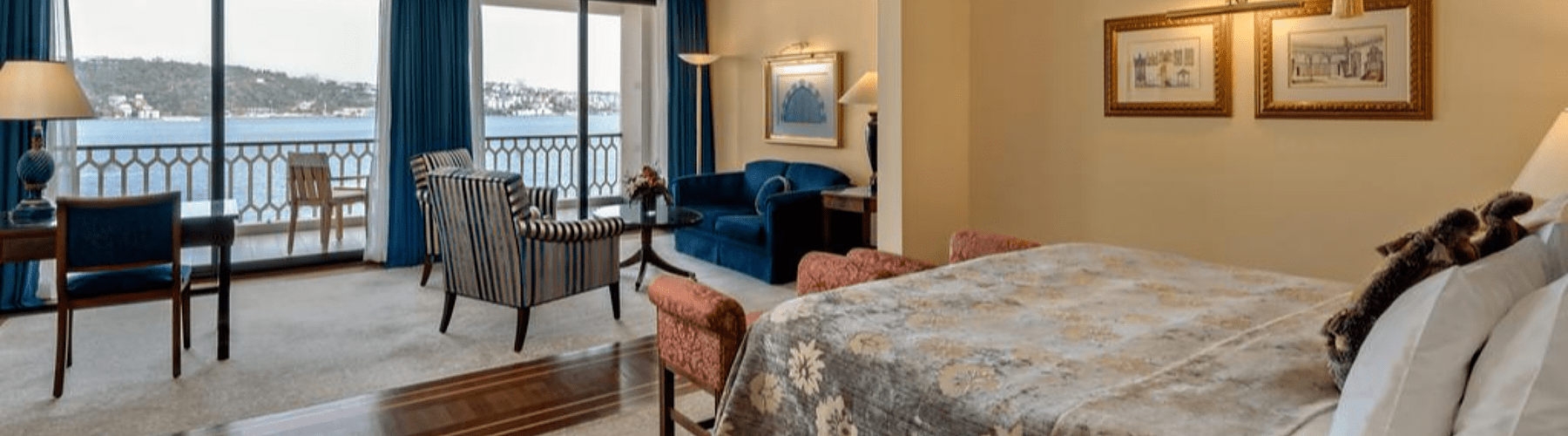 Всего в отеле 310 номеров, включая несколько люксов в императорском дворце. Также к услугам гостей бары и рестораны, в которых готовят как традиционные турецкие блюда, так и высокую кухню. Есть спа-центр и открытый подогреваемый бассейн, откуда открывается вид на Босфор.