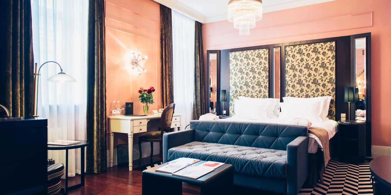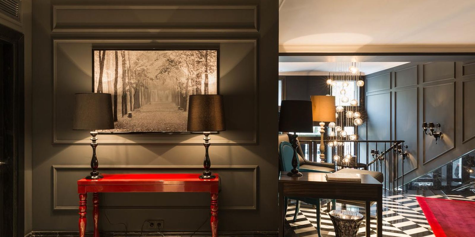 Интерьеры отеля разрабатывались мастерами британского архитектурно-дизайнерского бюро Project Orange, которые объединили классику с современными архитектурными решениями. В отделке номеров использовались только натуральные материалы, комнаты обставлены элегантной авторской мебелью и оборудованы по последнему слову техники. В улучшенных номерах есть зоны отдыха, а в люксах — отдельные гостиные.