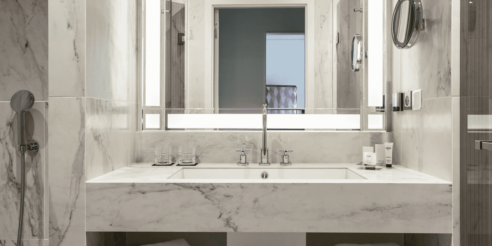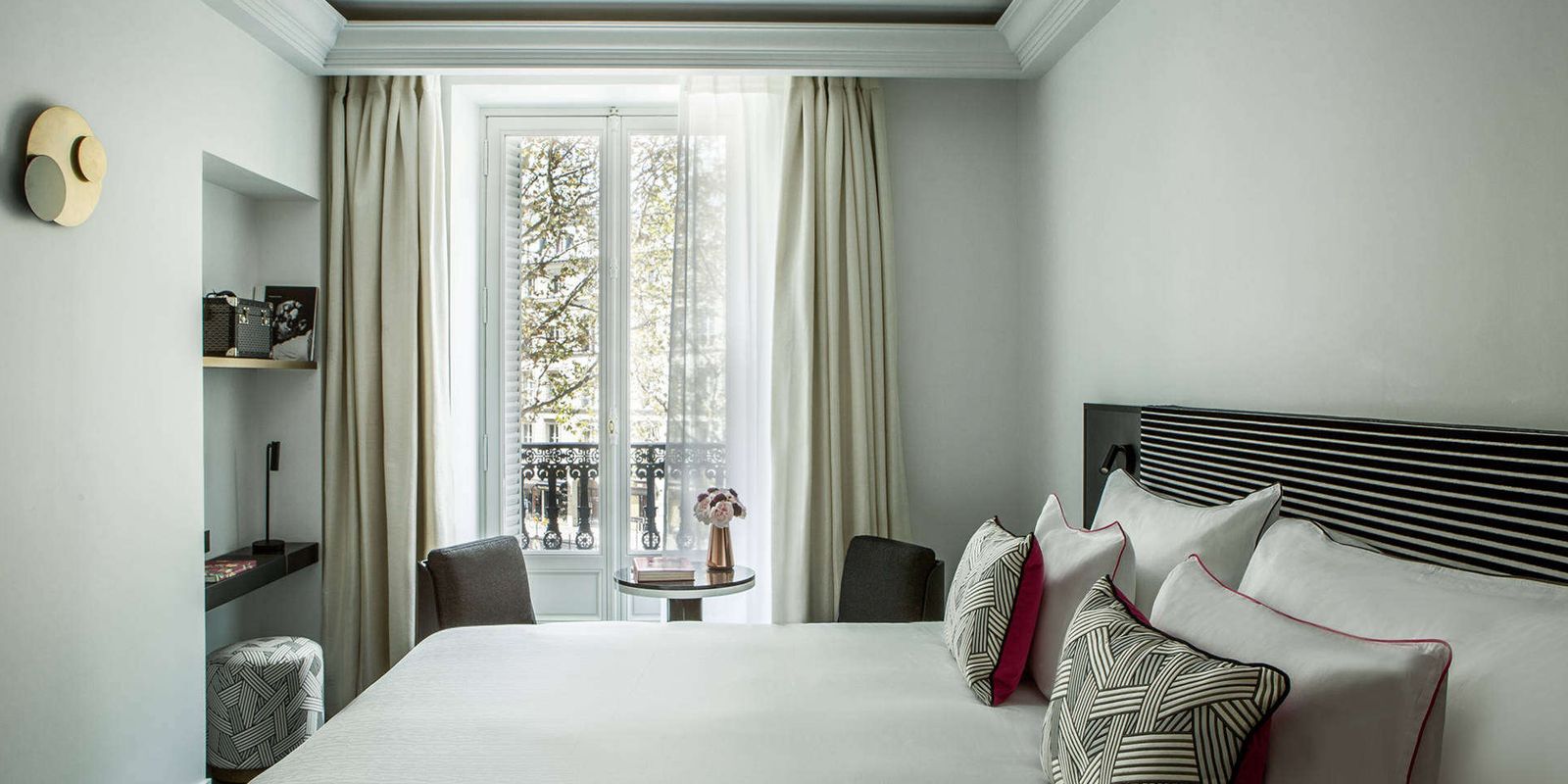 За заслуги по разработке настраиваемого мини-бара в номерах Fauchon l’Hôtel заслуживает дополнительных звезд. СПА Carita предлагает гостям массажи, а также процедуры по уходу за лицом и телом, в том числе прямо в номерах.
