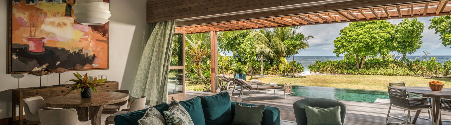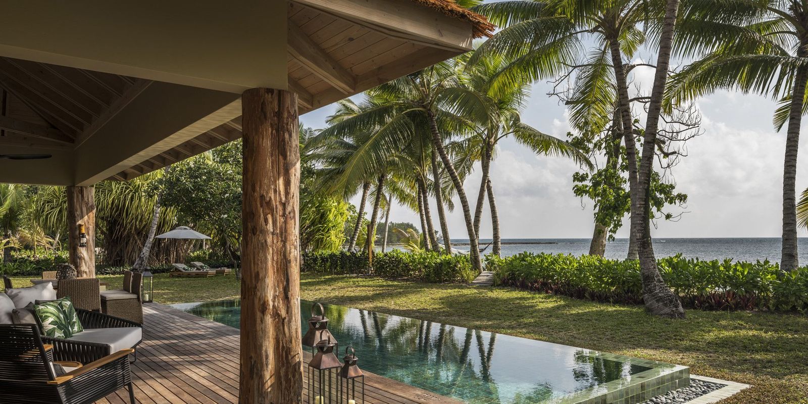 Four Seasons Resort Seychelles at Desroches Island — отель-курорт на коралловом острове Дерош. На островке протяженностью 6 км пляжная линия составляет 14 км — это побережье с белым песком и пальмами. Варианты размещения: апартаменты и виллы с выходом к пляжу, с собственным бассейном и патио.