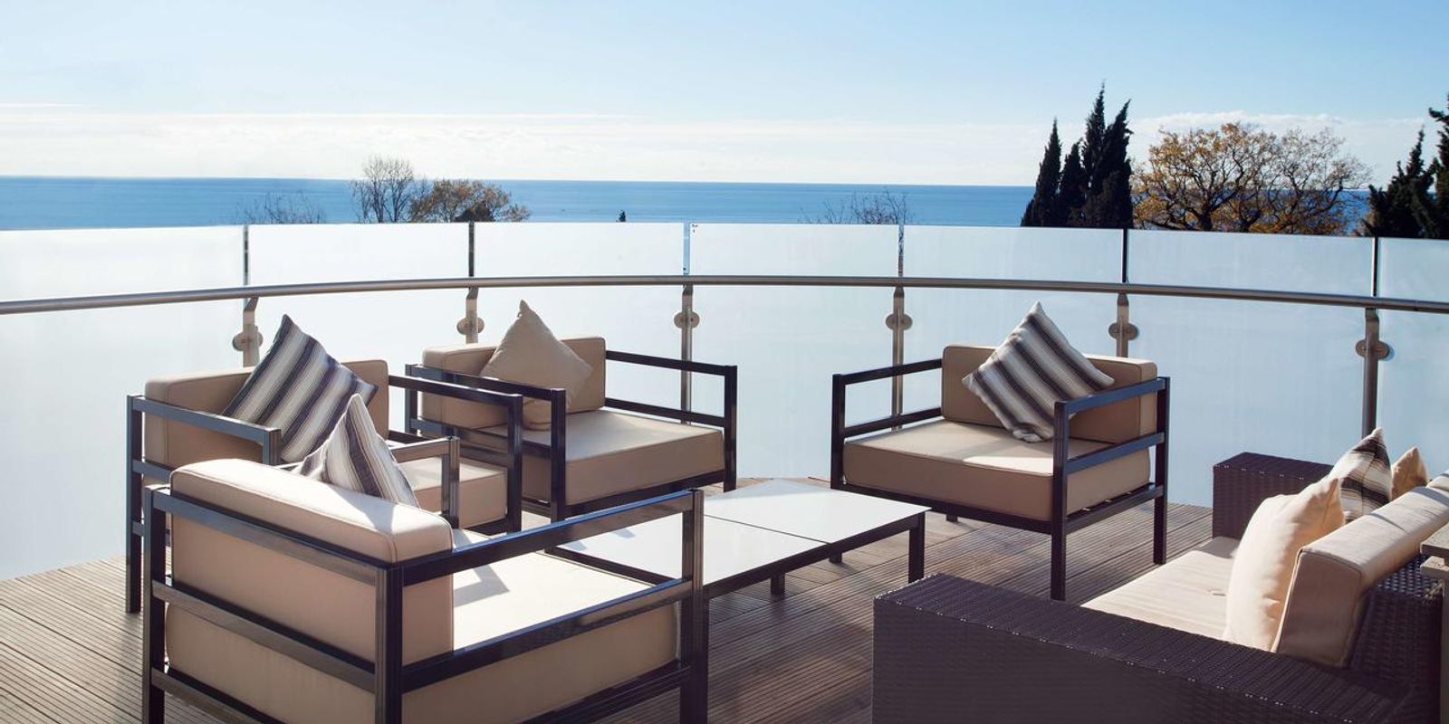 Во всех 198 номерах и люксах панорамное остекление и просторные балконы позволяют беспрепятственно любоваться Черным морем и живописными окрестностями. Для постояльцев люксов круглосуточно доступен специальный клубный лаундж Regency Club на 14-м этаже.