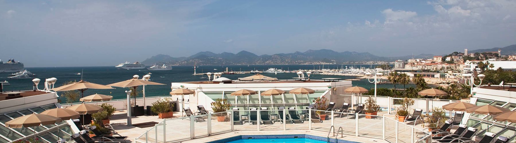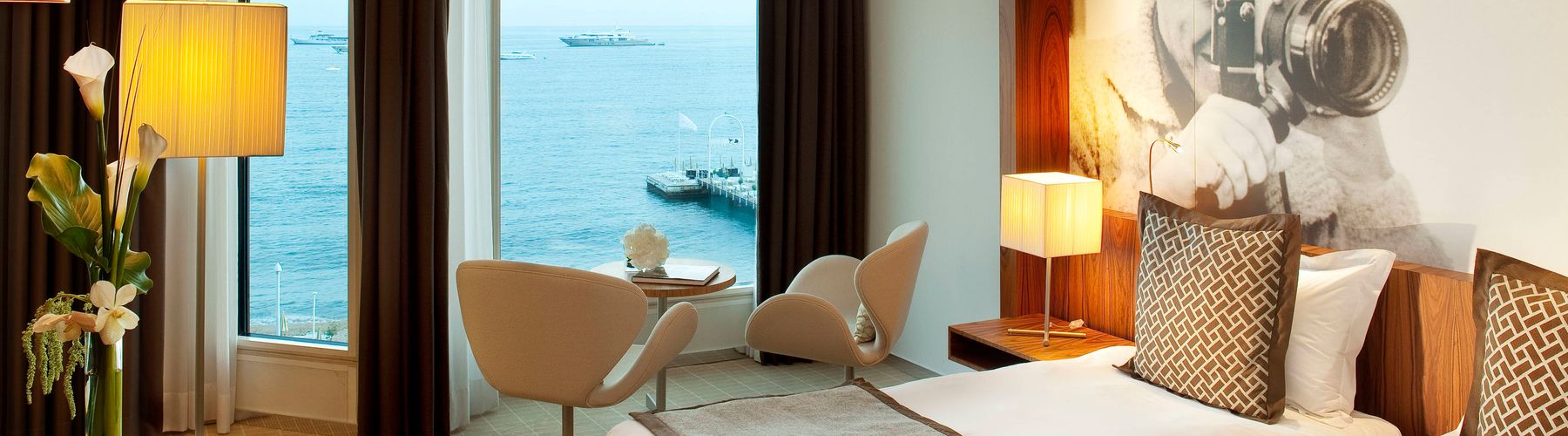 Номера отеля оформлены в кремовых и шоколадных тонах в тематике Международного Каннского кинофестиваля. С балконов и из окон открывается вид на залив и Леринские острова.