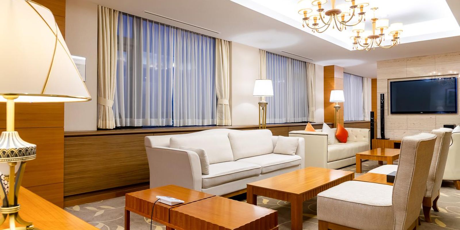 К услугам гостей — 6 банкетных залов, 3 ресторана, фитнес-центр с большим крытым бассейном, тренажерный зал, сауна, массажный кабинет, парикмахерская и маникюрный салон. Завтрак и парковка входят в стоимость проживания.