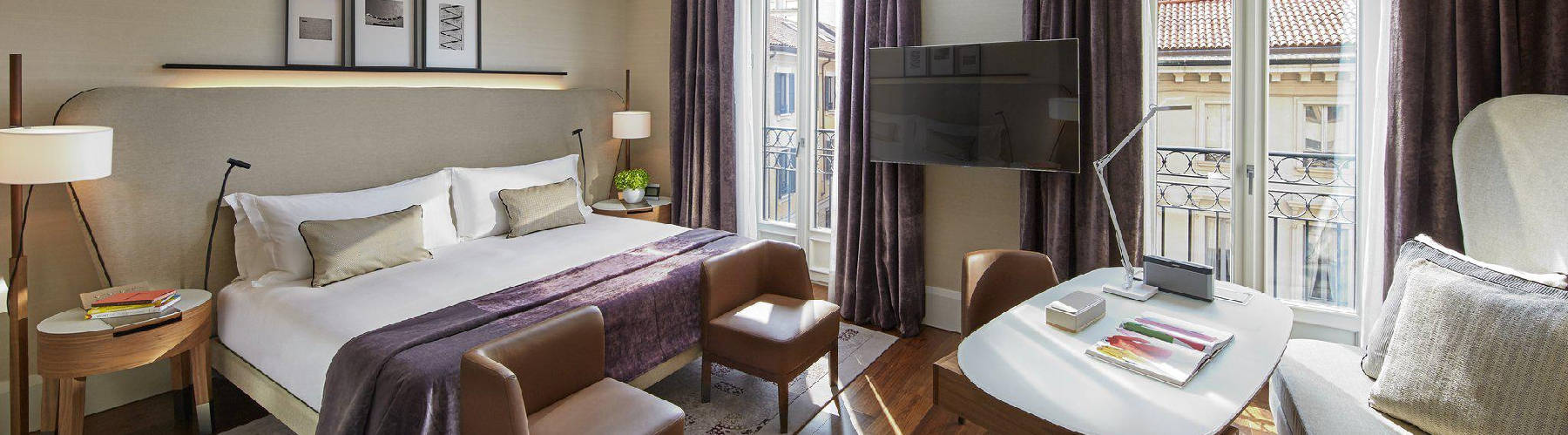 К услугам гостей — номера и сьюты, оформленные в современном стиле, ресторан Seta, отмеченный двумя звездами Michelin, бар, а также бесплатный оздоровительный центр с фитнес-залом и крытым бассейном. Из окон некоторых номеров открывается вид на Миланский собор.