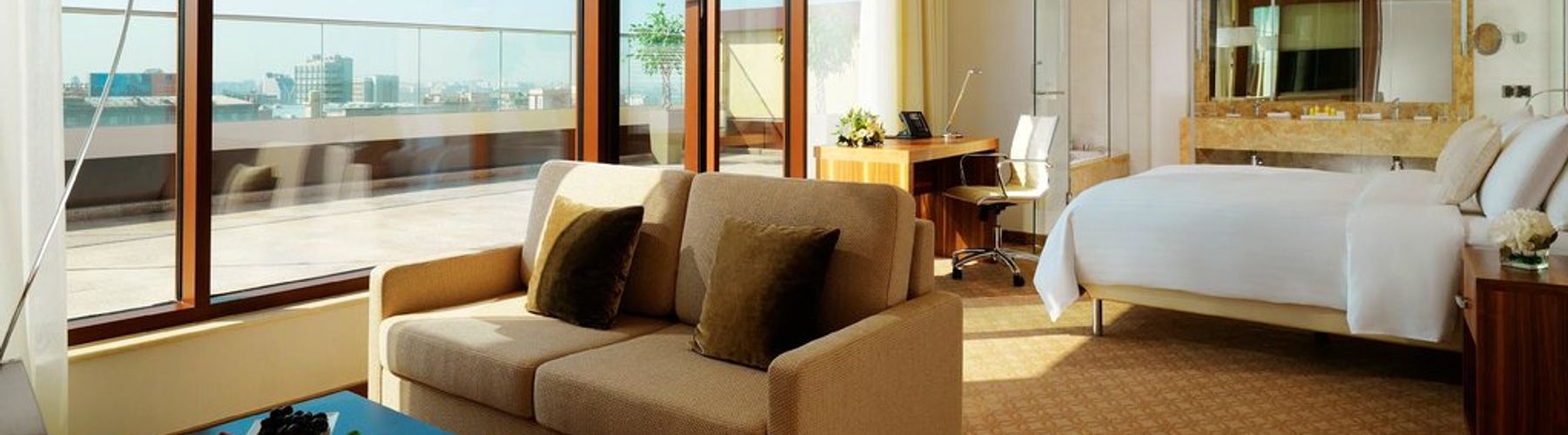 Просторные номера оснащены кондиционером, мини-баром и ЖК-телевизором со спутниковыми каналами. В ванной комнате для гостей приготовлены фен и элитные косметические принадлежности.
