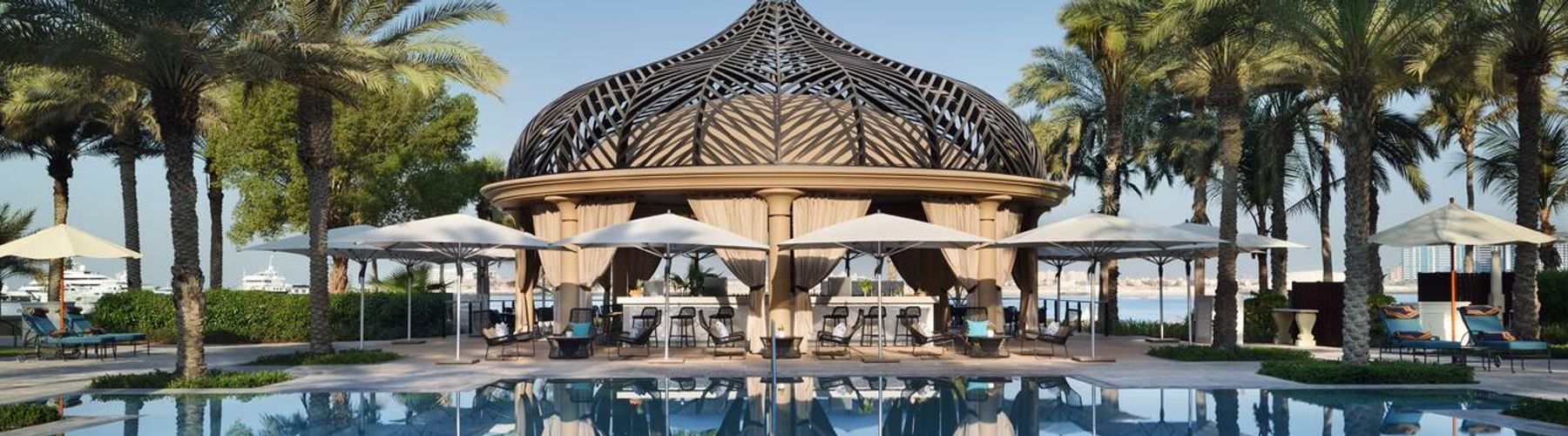 Элегантный пляжный курорт One&Only The Palm расположен на западном «полумесяце» полуострова Палм-Джумейра. При этом гостям не страшны знаменитые пробки на единственном шоссе «Пальмы»: до центра Дубая можно добраться на катере всего за несколько минут, а грандиозной панорамой города в романтической морской дымке можно наслаждаться в любое время дня и ночи.