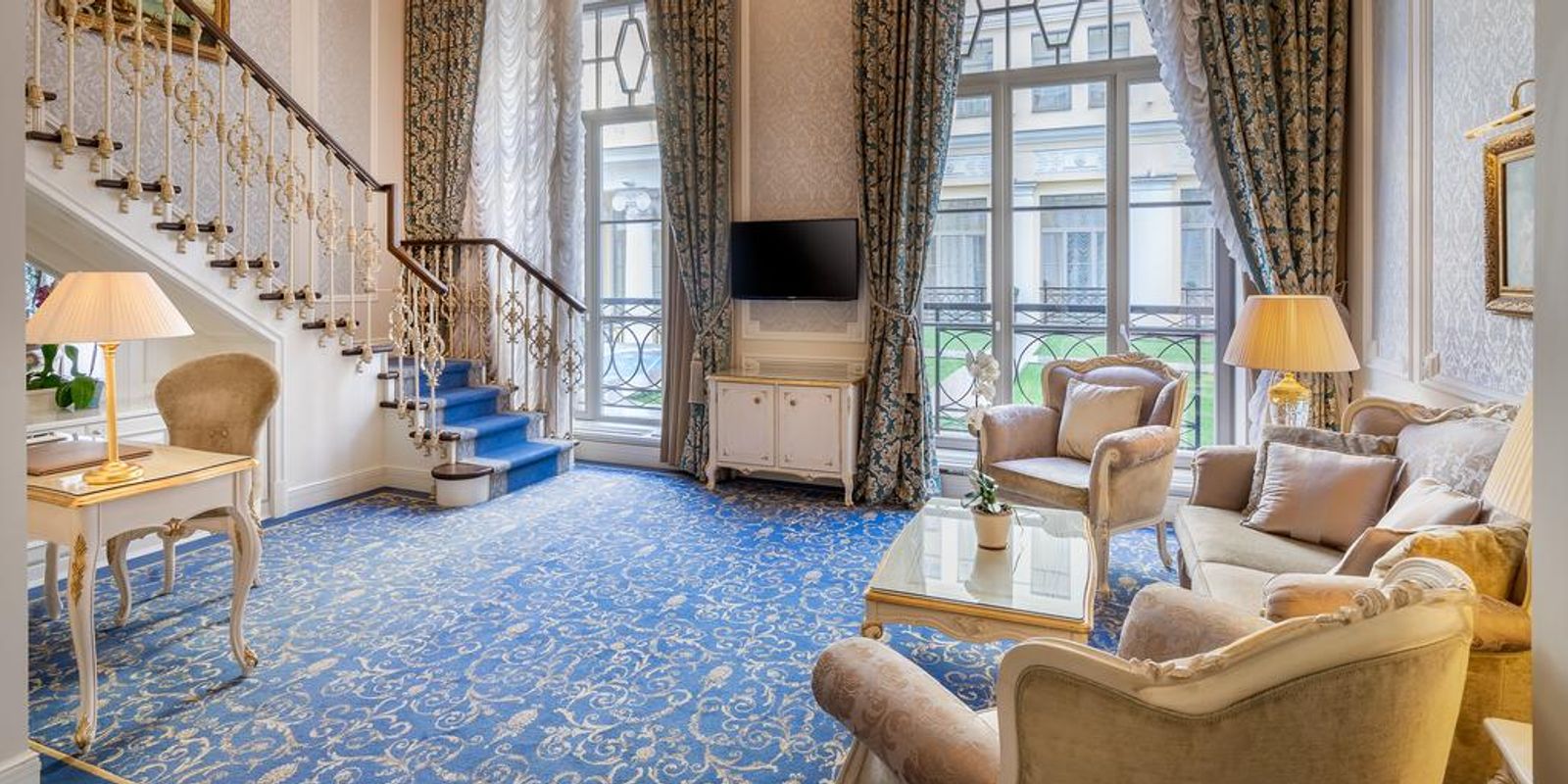 Гости отеля смогут не только увидеть резиденцию российских императоров, посетив Эрмитаж, но и погрузиться в эту атмосферу и «прожить» ее. Связь с Эрмитажем прослеживается в деталях: шеф-повар ресторана работает по меню императорских резиденций, посуда в отель поставляется Императорским фарфоровым заводом, а униформа швейцаров копирует костюмы царских дворецких в Зимнем дворце.