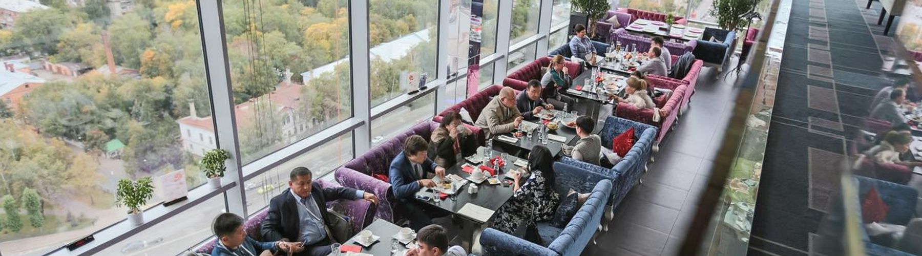 На 25-м этаже отеля расположен панорамный ресторан современной европейской кухни Extra Lounge.