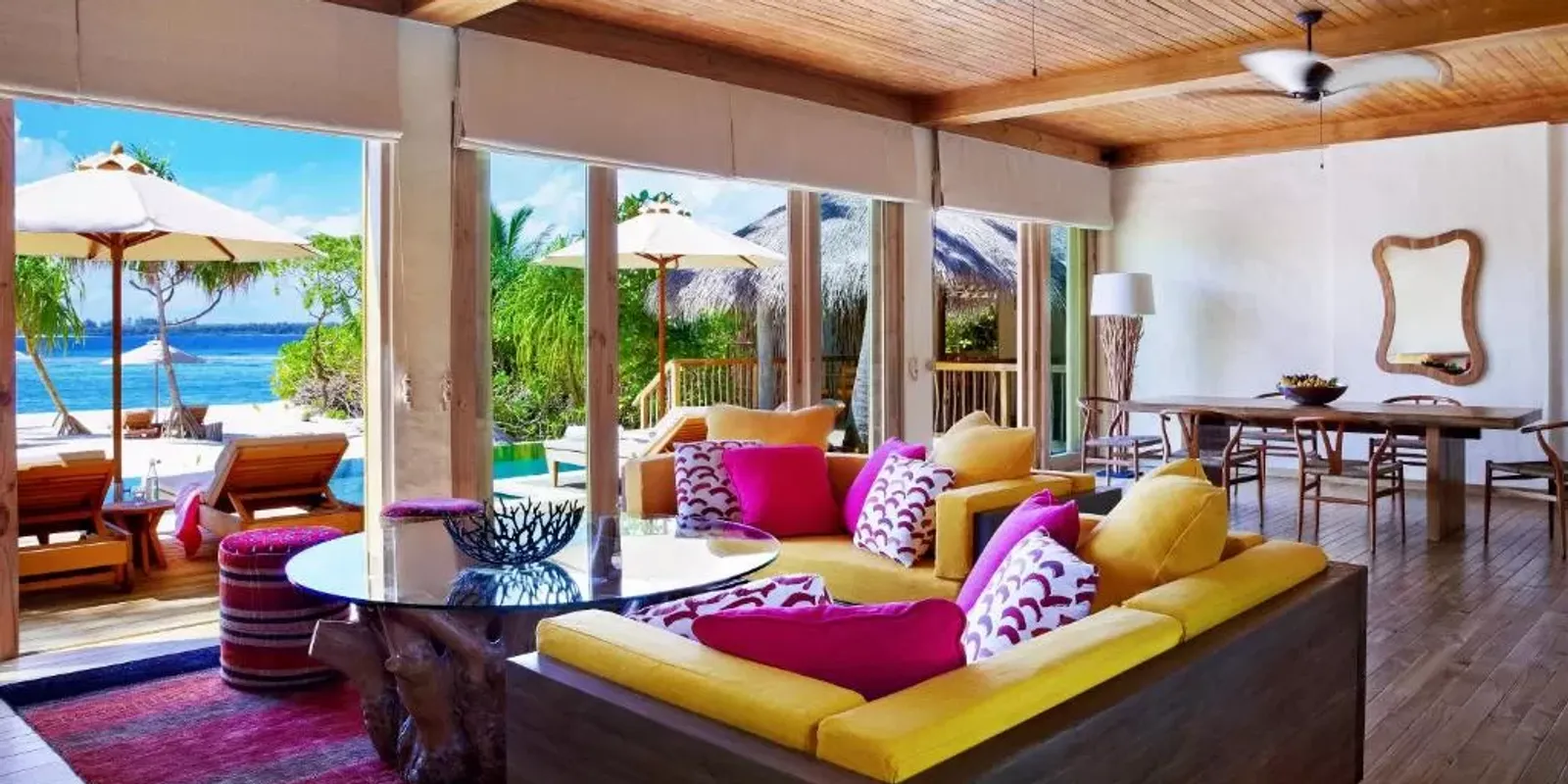 Отель Six Senses Laamu находится на красивейшем частном острове, входящем в атолл Лааму. 100 роскошных вилл расположены на белоснежном пляже, прямо над лазурными водами лагуны. Интерьеры номеров лаконичны: отделка из натуральных материалов, элементы декора в мальдивском стиле, просторные террасы с видом на океан.
