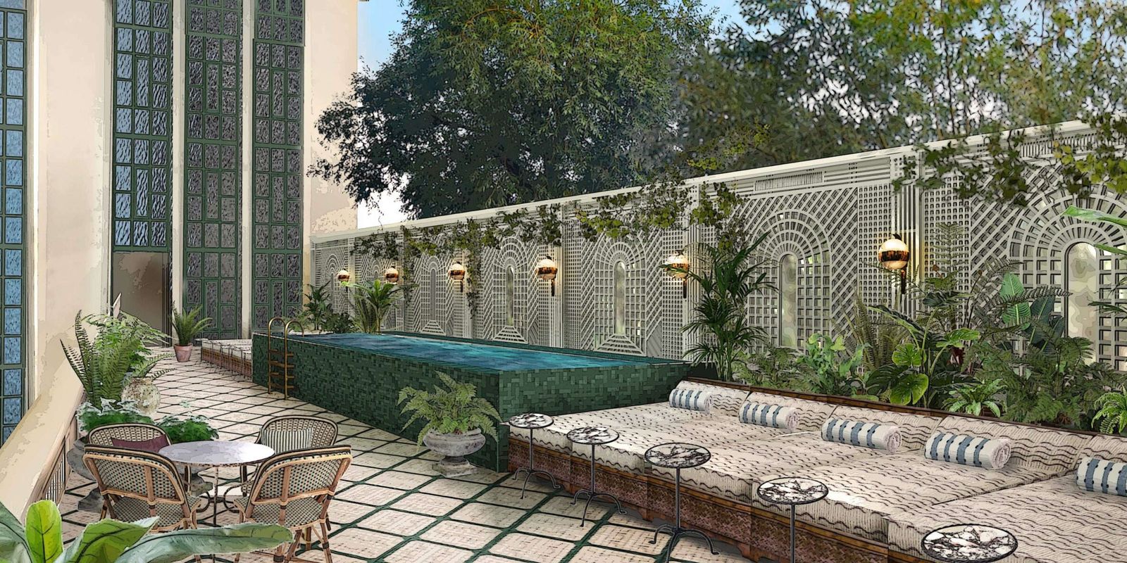 Изогнутые линии, расписные фрески, элементы декора из ротанга и бамбука создают в 36 номерах особую атмосферу. Примечателен внутренний двор c террасой и открытым бассейном — большая редкость для Парижа: гости могут поплавать и насладиться умиротворяющим спокойствием между посещениями Лувра и Помпиду.
