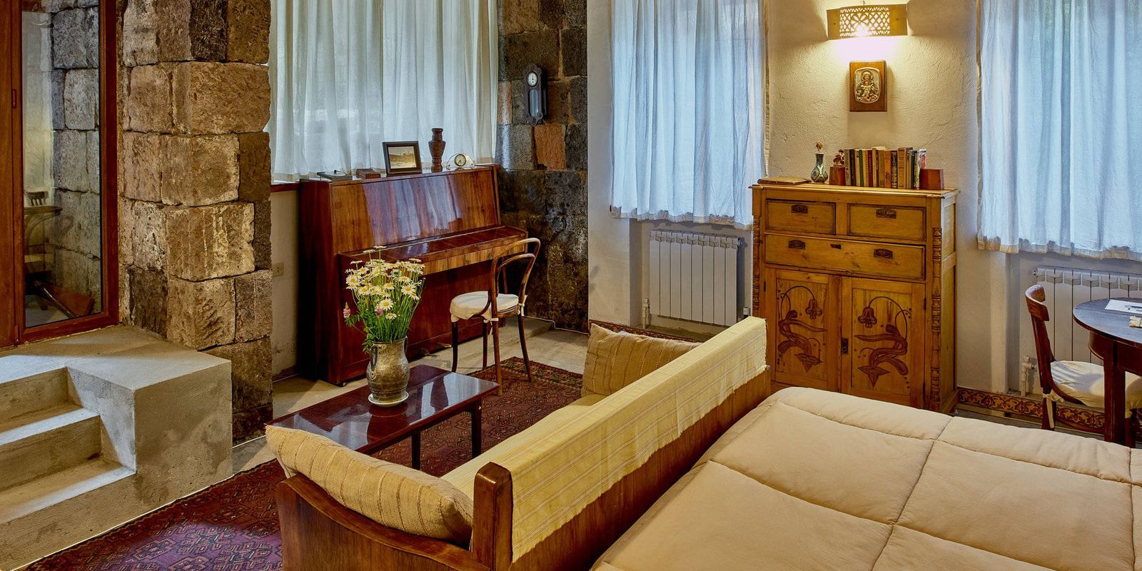 Первый бутик-отель в Гюмри — Villa Kars — расположен в сердце старого города и своим внешним видом напоминает о романтике армянской истории. Уютные номера, которые словно переносят гостей в начало прошлого века, деревянные галереи и балкончики, небольшой садик на территории — все радует взгляд своей аутентичностью. Антиквариат и архитектурные детали отеля прекрасно сочетаются с удобствами XXI в.