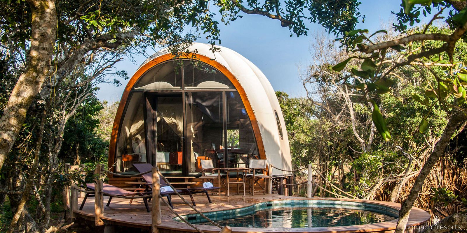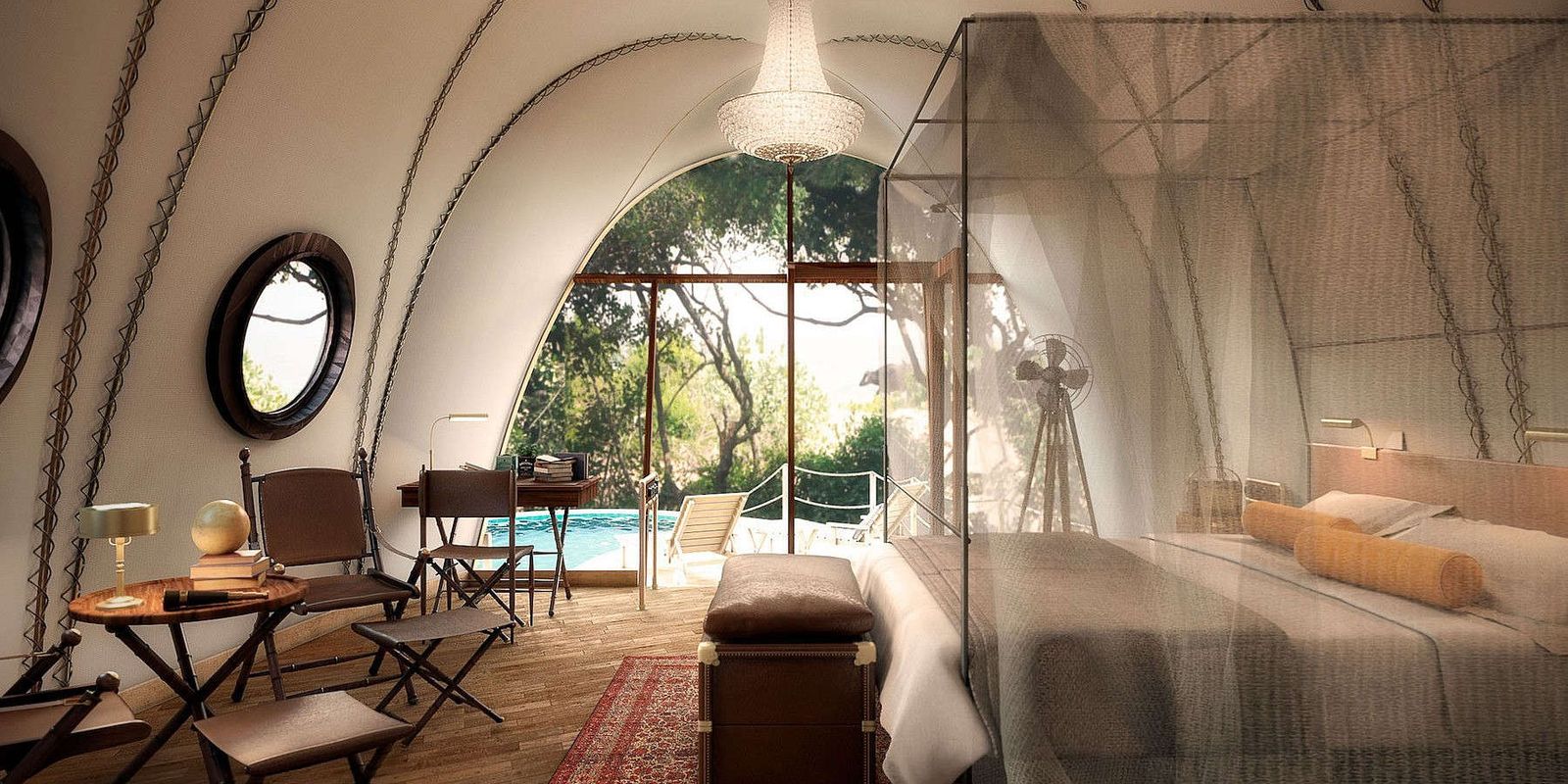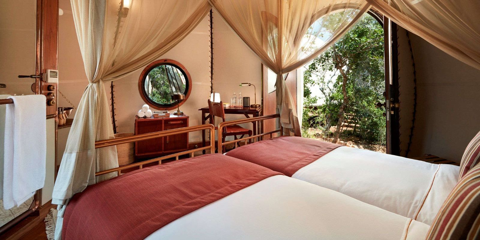 Wild Cost Tented Lodge, член ассоциации Relais & Chateaux — роскошный глэмпинг на берегу океана от владельцев Dilmah Tea — со стильным шатрами, удобными кроватями и бассейнами.