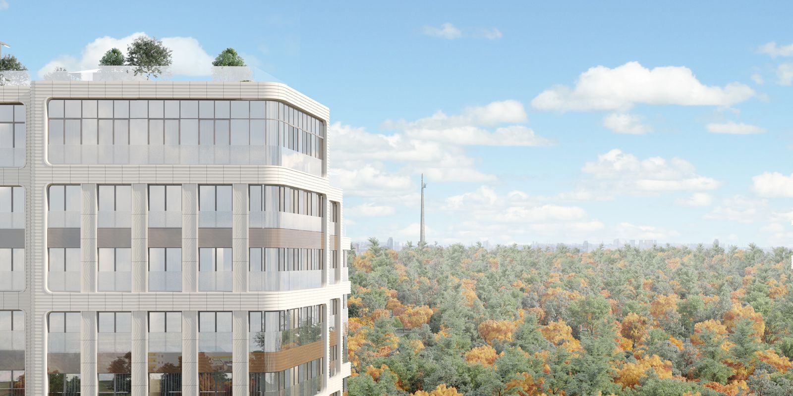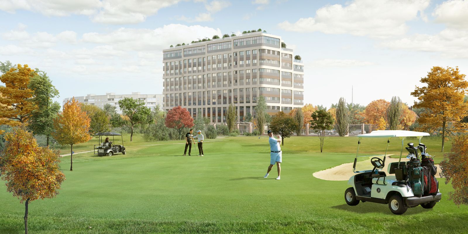 Проект Ambassador Golf Club Residence с видом на гольф-поля Московского городского гольф-клуба по праву считается самым ожидаемым проектом года. Это индивидуальный жест по отношению к городскому и ландшафтному окружению. Волнообразное раскрытие, переход к природе достигается за счет мягких очертаний плана здания.