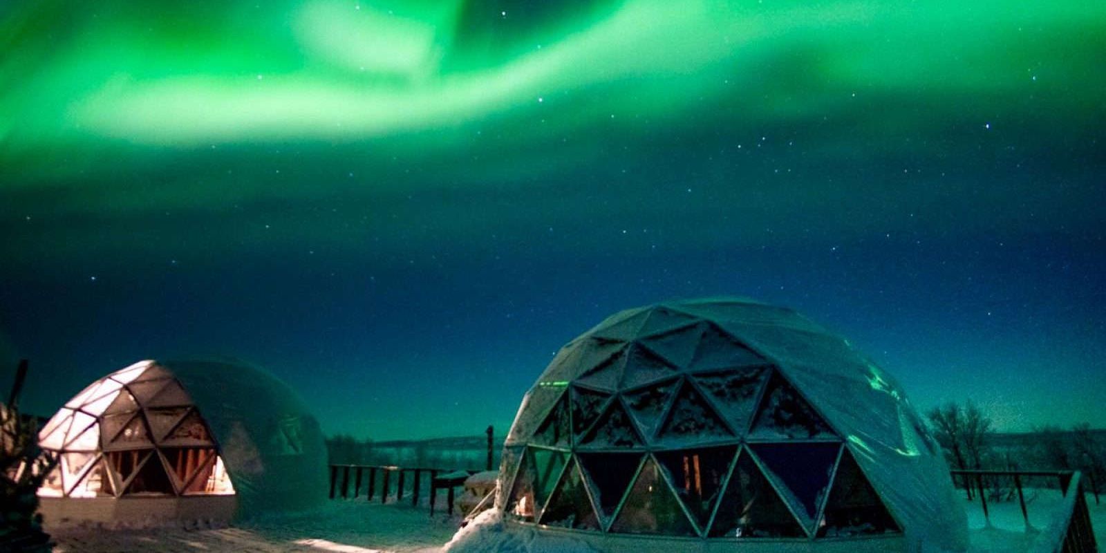 Аврора Вилладж — целый комплекс отдыха вдали от цивилизации, состоящий из 10 комфортабельных иглу, где можно наблюдать Северное Сияние под стеклянным куполом, лежа на мягкой кровати!