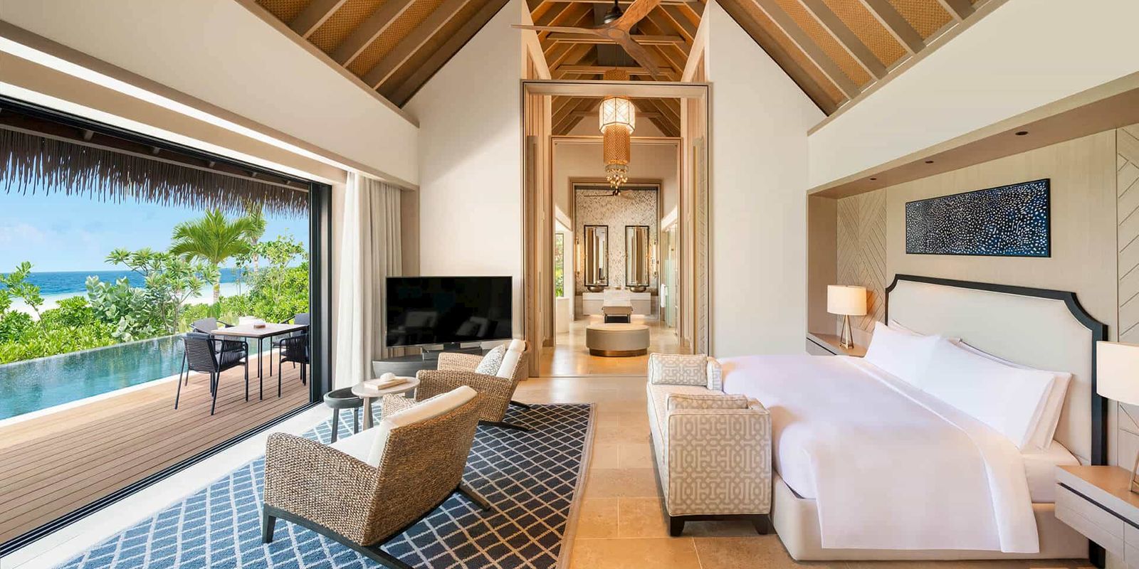 Beach Villa with Pool площадью 234 кв. м расположена рядом с пляжем. К услугам гостей — двуспальная кровать, гардеробная, ванная и душевая кабина, душ на открытом воздухе, открытый бассейн, обеденная зона на открытом воздухе и прямой выход на пляж.