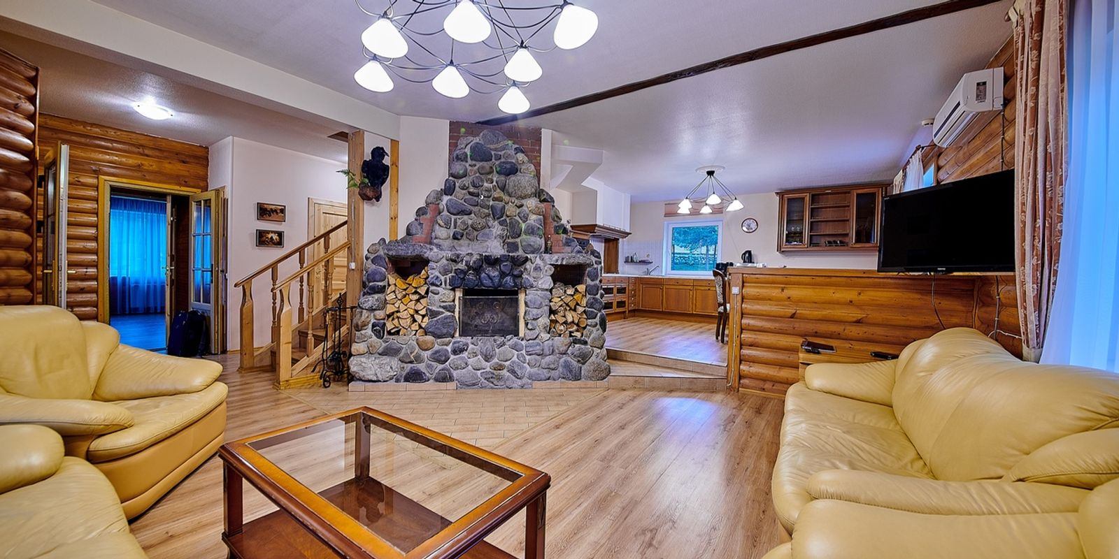 Банный комплекс «Черные камни» состоит из большого сруба, в котором могут париться до 25 человек, и малого банного коттеджа на шесть человек — идеально для семейного отдыха. Из панорамных окон открывается вид на озеро: летом в нем приятно просто поплавать, а зимой, напарившись, нырнуть в прорубь.