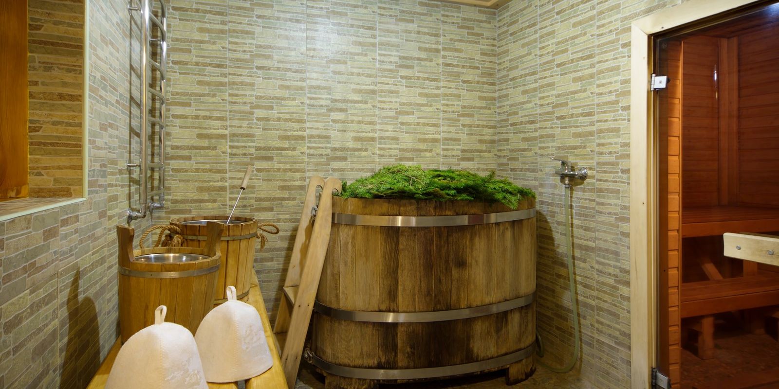 Это место может похвастаться большим банным комплексом, состоящим из 12 бань, которые топятся березовыми дровами. В обширном меню спа-процедур «а-ля рус» — таежное парение на контрасте, прогревание дубовым веником с использованием соляного брикета, мыльный массаж, кофейный или медово-соляной пилинг. Купель в «Горячих ключах» наполняется теплым пивом, хмелем и солодом.