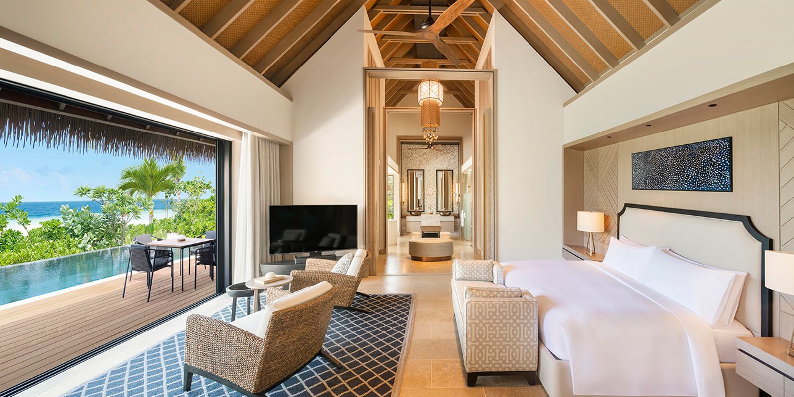 Waldorf Astoria Maldives Ithaasfushi — роскошный курортный отель с 11 уникальными ресторанами, включая китайский, ближневосточный и фирменный ресторан на дереве, СПА-центром с 10 процедурными кабинетами, центром водных видов спорта и йоги, теннисными кортами и детским парком развлечений.