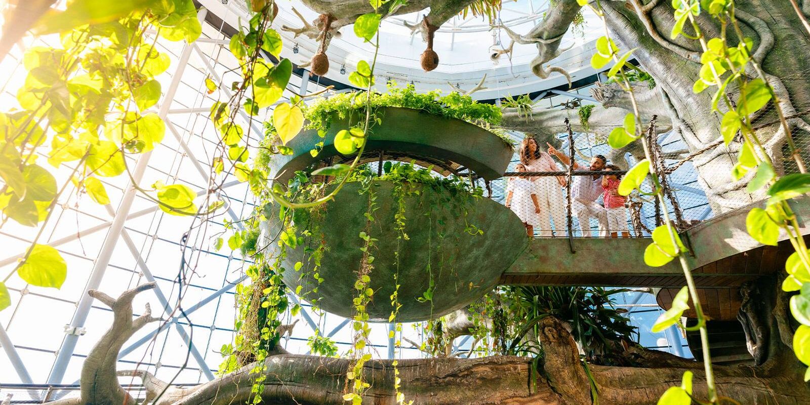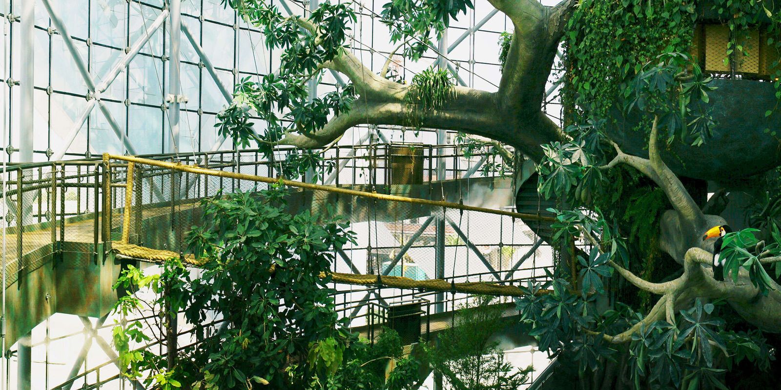 Оранжерея пользуется популярностью у посетителей всех возрастов и состоит из четырех ярусов: «Крона», «Средний уровень», «Лесные тропинки» и «Тропический лес после ливня». На каждом уровне рассказывают о важной роли, которую играют тропические леса в жизни нашей планеты, а прогулка среди водопадов дарит массу незабываемых впечатлений.