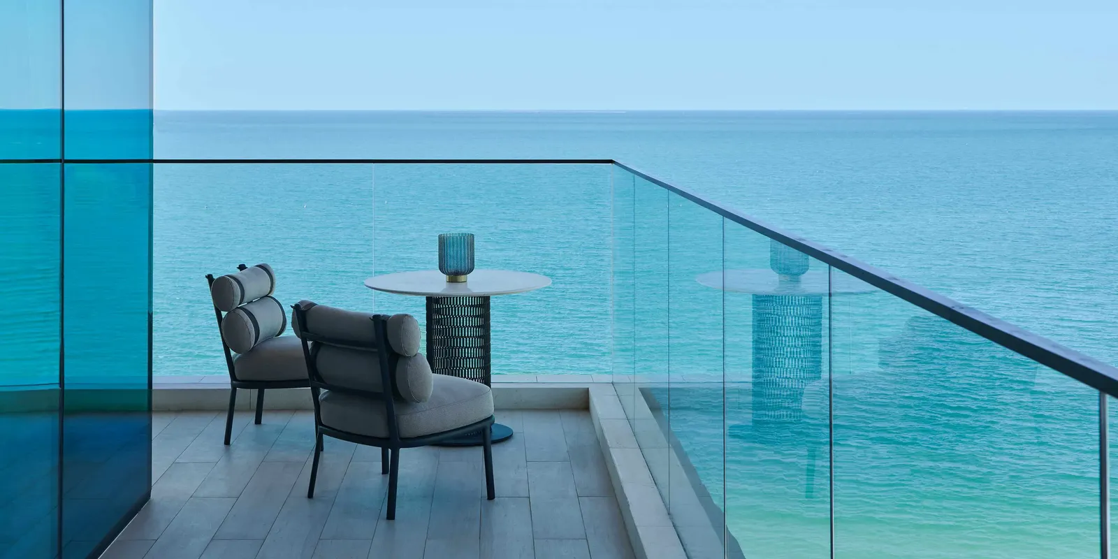 Этот пентхаус с современным декором — самый роскошный вариант проживания в отеле Mandarin Oriental Jumeira. Просторная спальня имеет выход на панорамную террасу, а также большую мраморную ванную комнату, парную, две гардеробные комнаты.