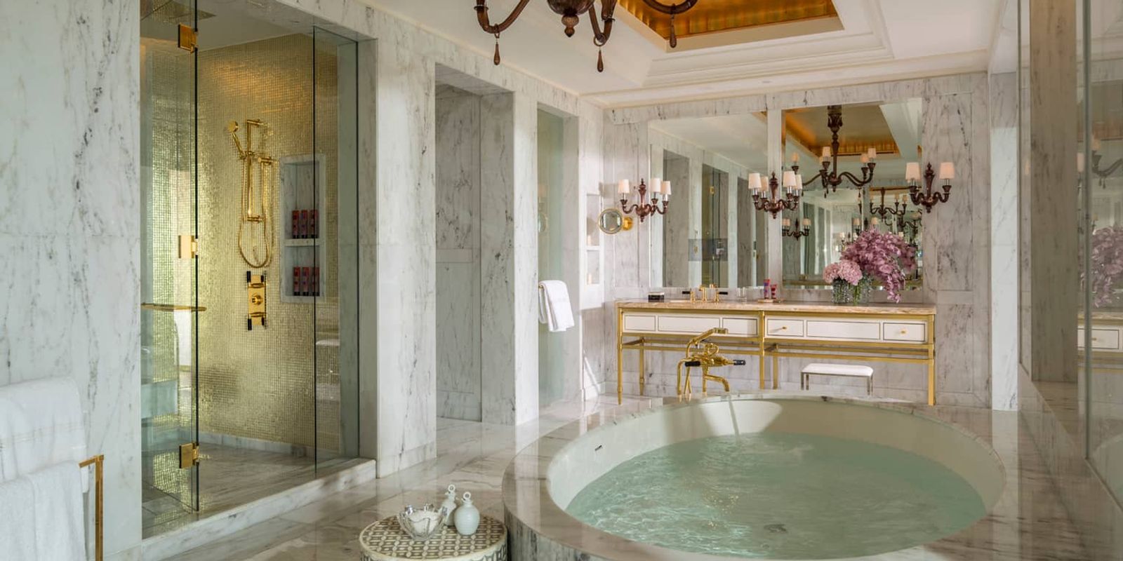 Сьют занимает площадь 600 кв. м и включает террасы с видом на море, гостиную с обеденной зоной, кухню, кабинет, кинозал, спальню с кроватью king-size, зону с тренажерами, парную, гардеробную и две ванные комнаты.
