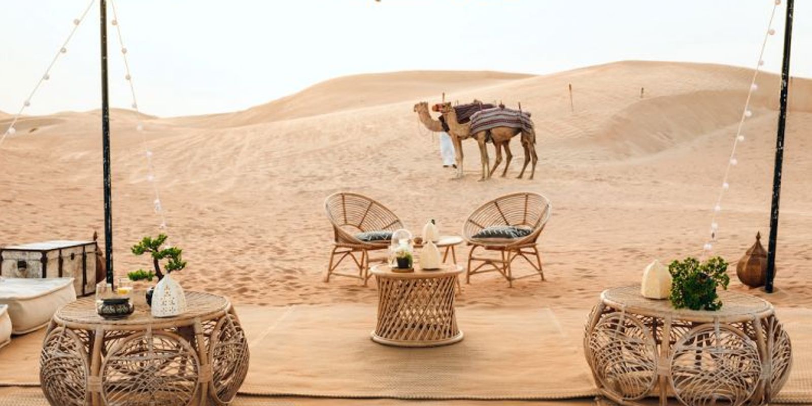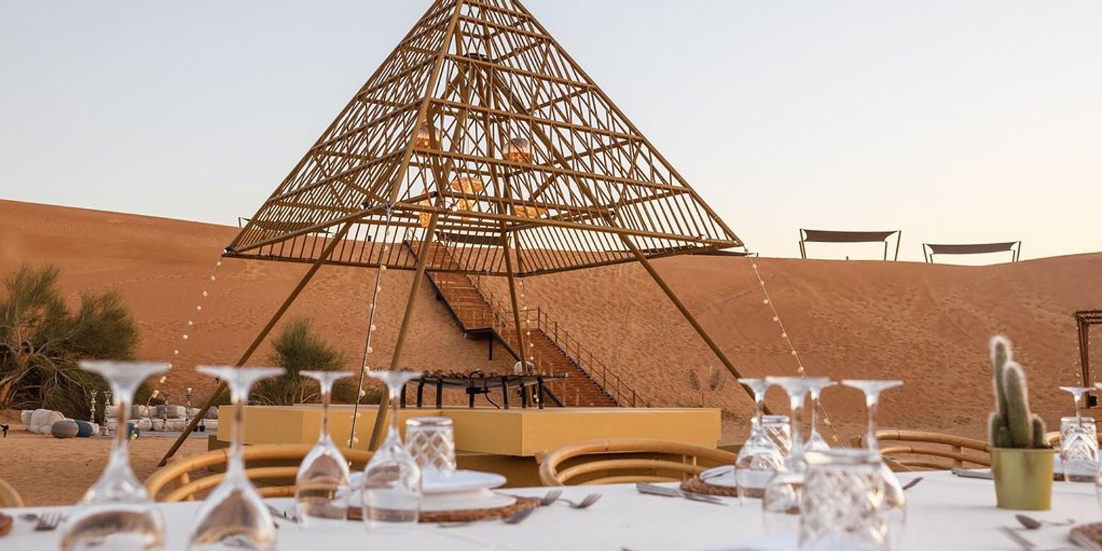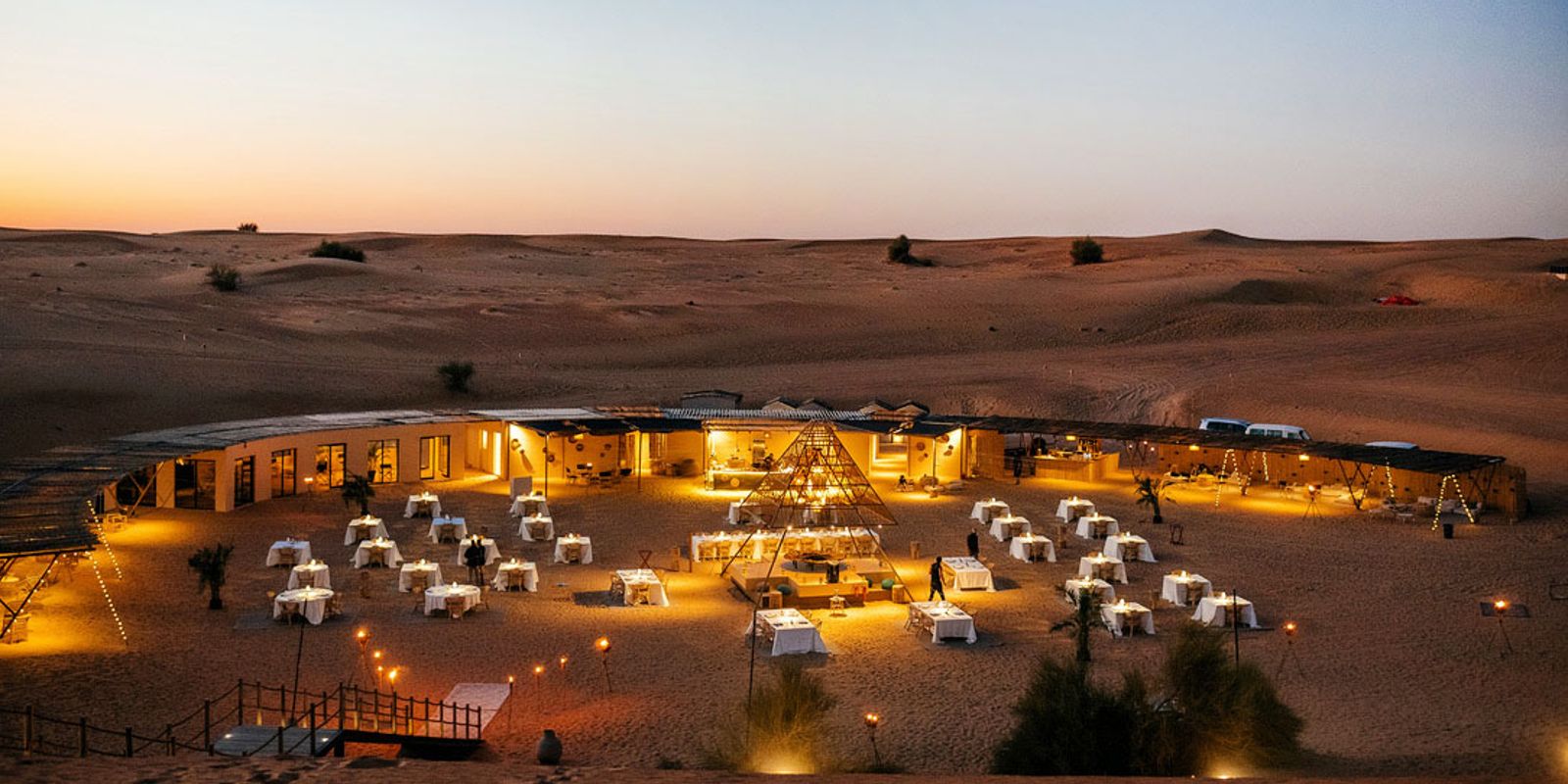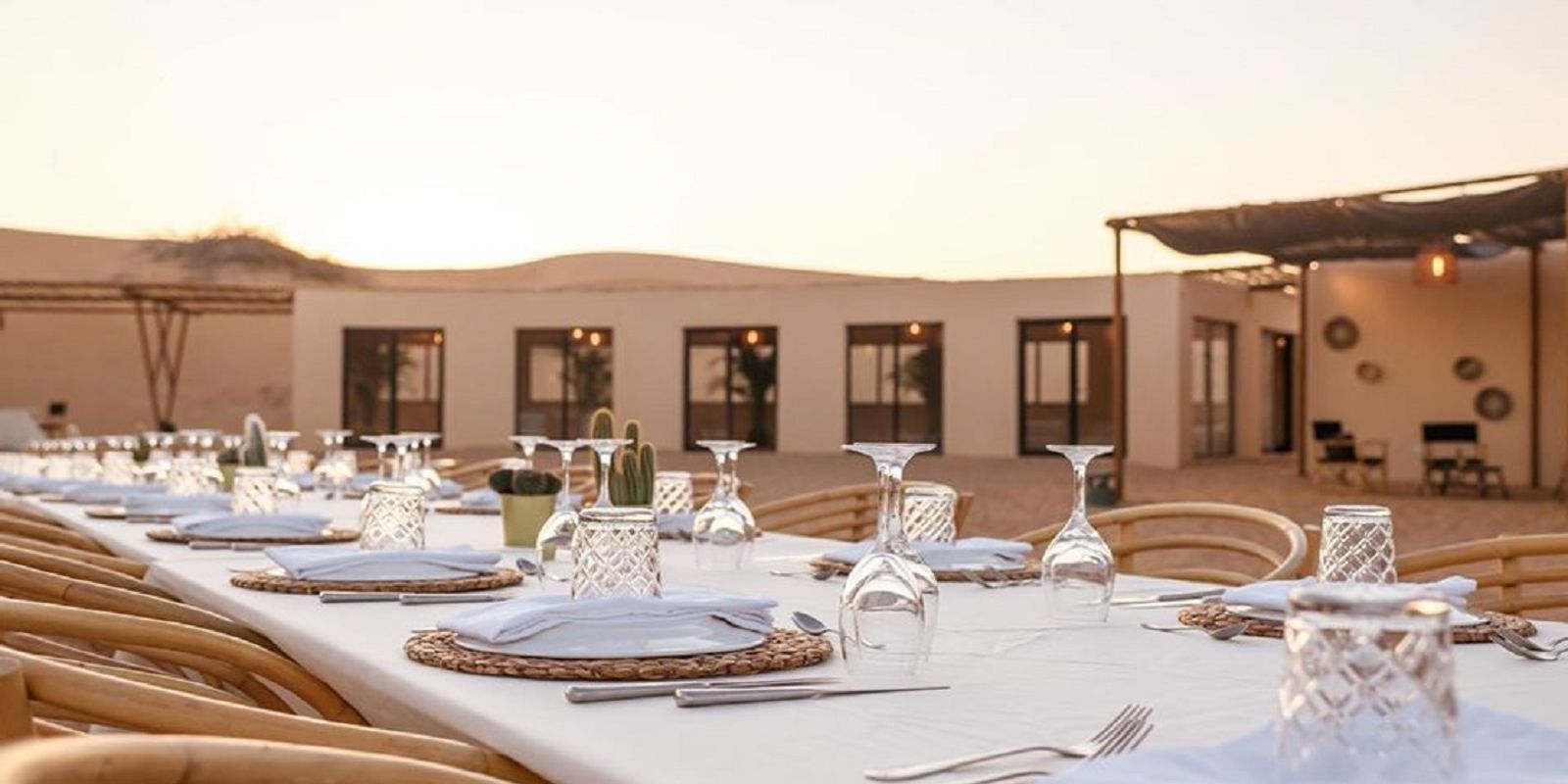 Лагерь расположен посреди Аравийской пустыни. В ресторане можно заказать веганские и вегетарианские блюда, также предусмотрено отдельное детское меню. Все блюда готовят на кухне под открытым небом.