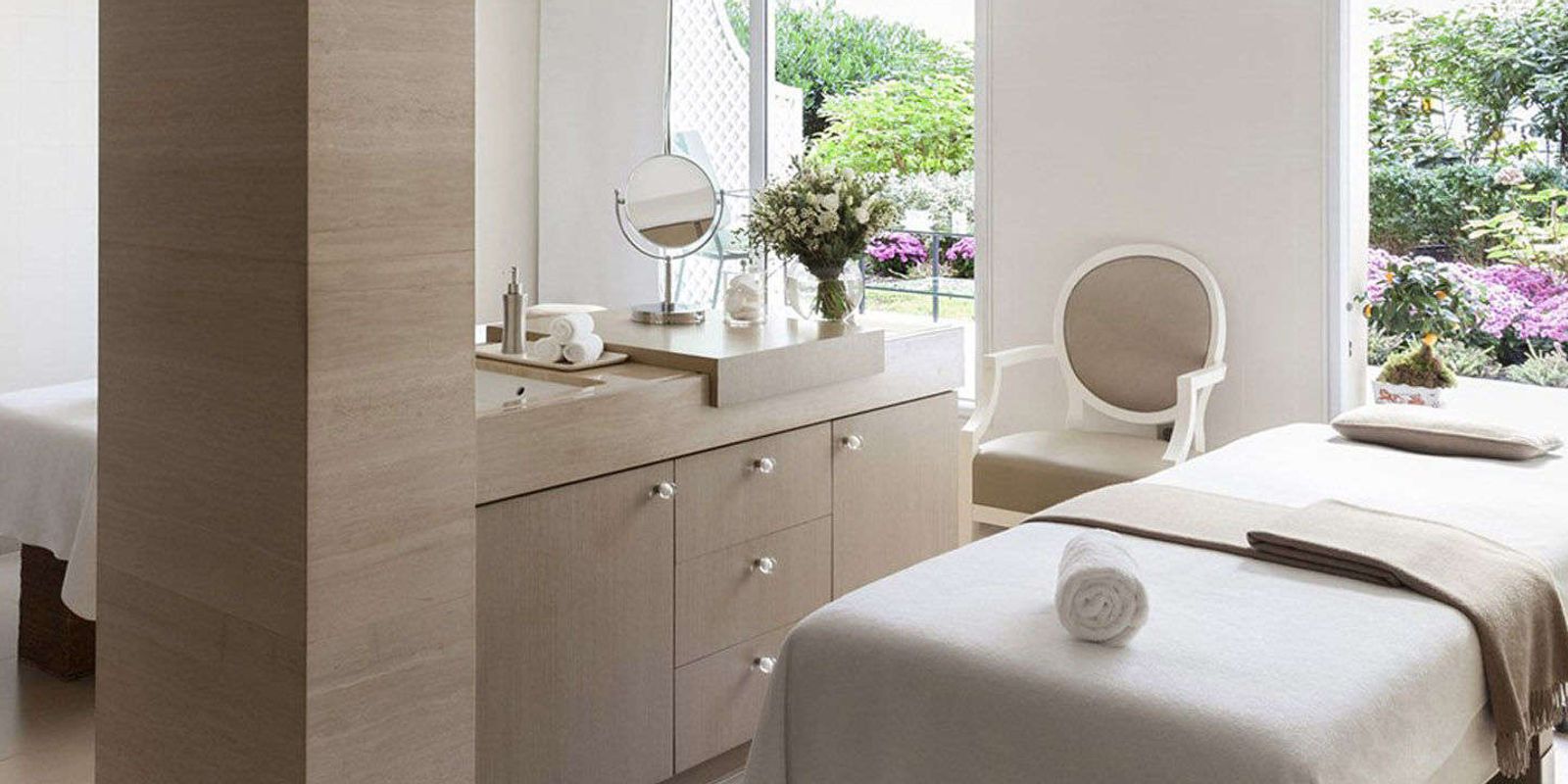 К услугам гостей — восемь процедурных кабинетов, в том числе спа-сьют для пары, и все они выходят окнами в сад во внутреннем дворе, залитый солнечным светом.