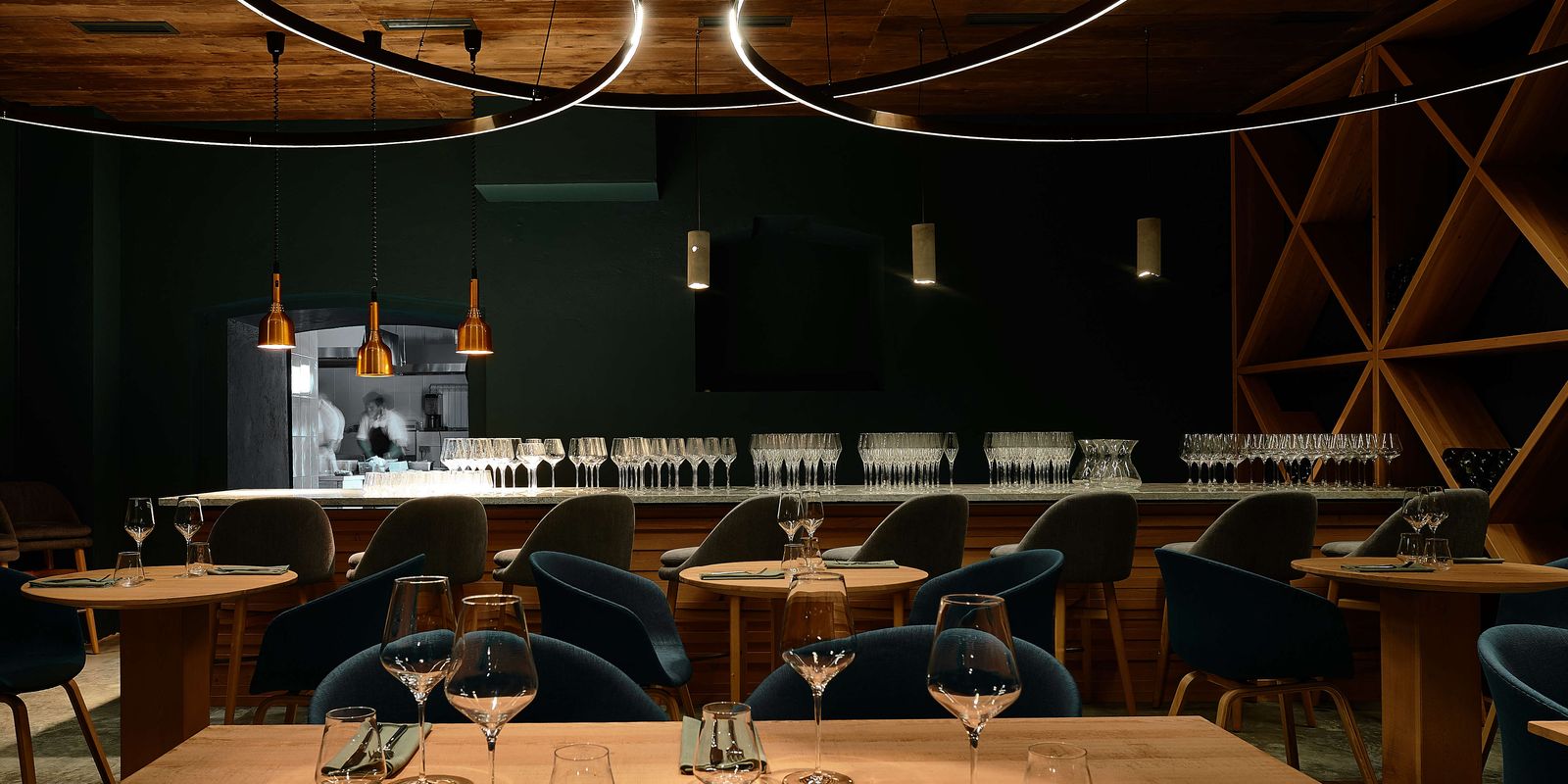 К услугам гостей — барный зал с общительными барменами, контактной барной стойкой и диджей-сетами по пятницам и субботам (Slavaka Azallie, Dj Anton Banderas, Shnaider); винный зал с комфортной посадкой и винной комнатой; гастрономический зал с открытой кухней и шеф-тейблом, за которым происходит приготовление блюд.
