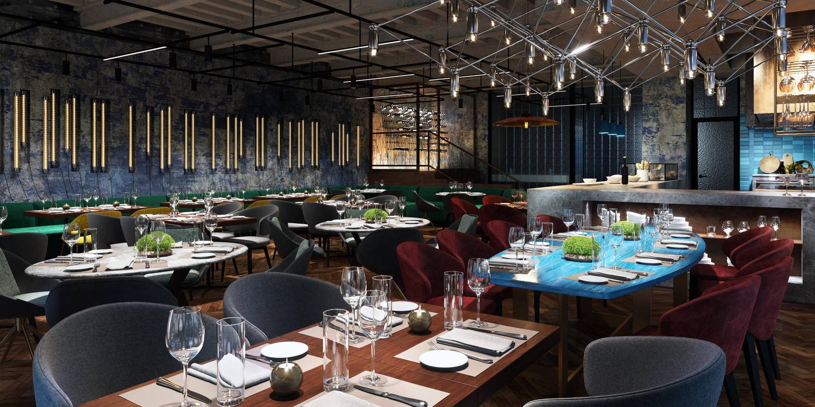 Здесь готовят чипсы из батата, салат с кальмарами фри и осьминога на гриле с киноа, трио тартар, венгерский суп-гуляш, поке и боулы, раклет и такос с креветками и др. Мясо представлено в виде аргентинских и японских стейков, приготовленных в особой печи по аутентичным рецептам.