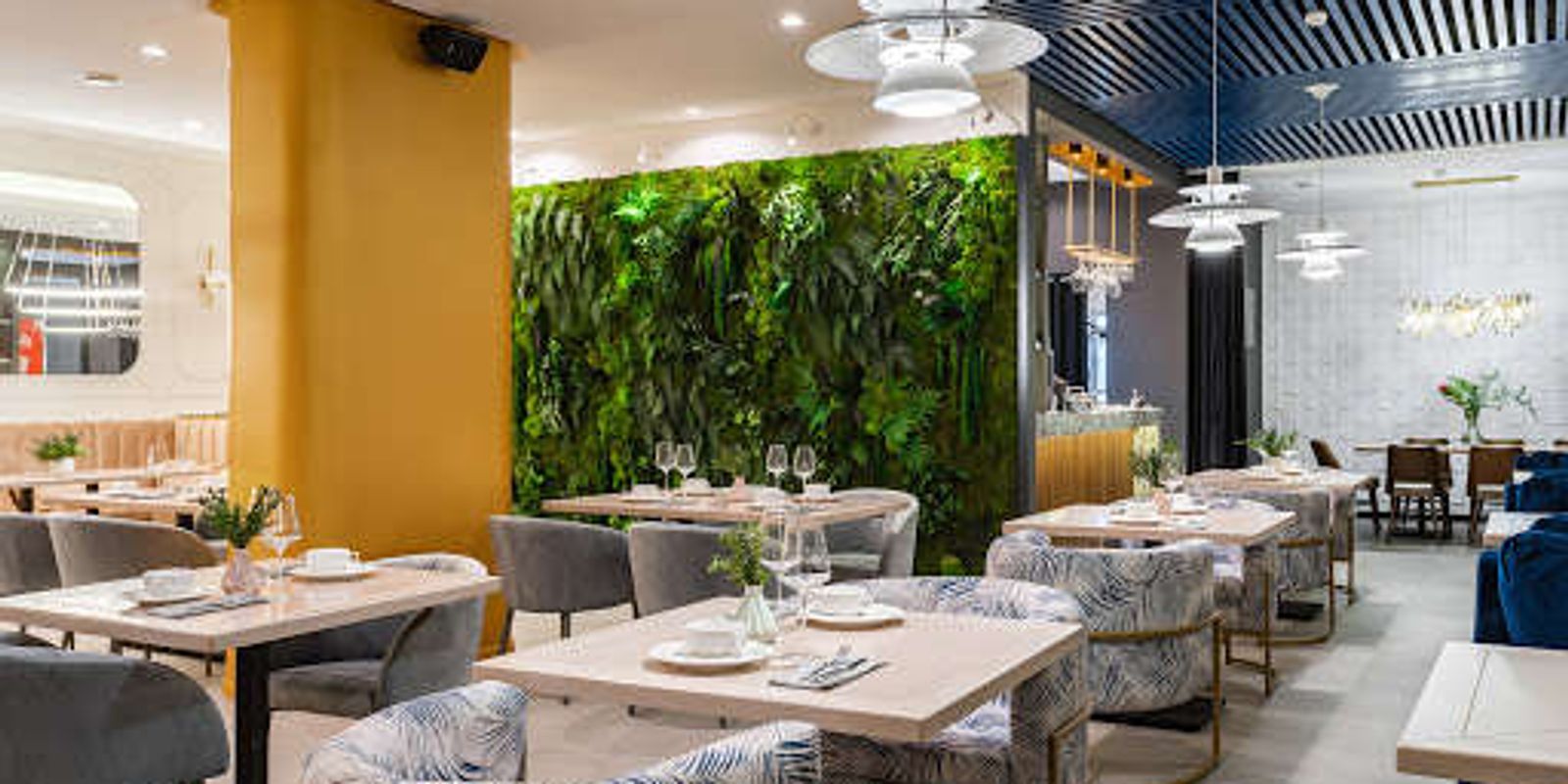 Интерьер ресторана олицетворяет собой гармонию стиля и качества в каждой детали. Респектабельная удобная мебель, глубокие благородные цвета, неожиданные стилистические решения создают атмосферу уюта и комфорта.