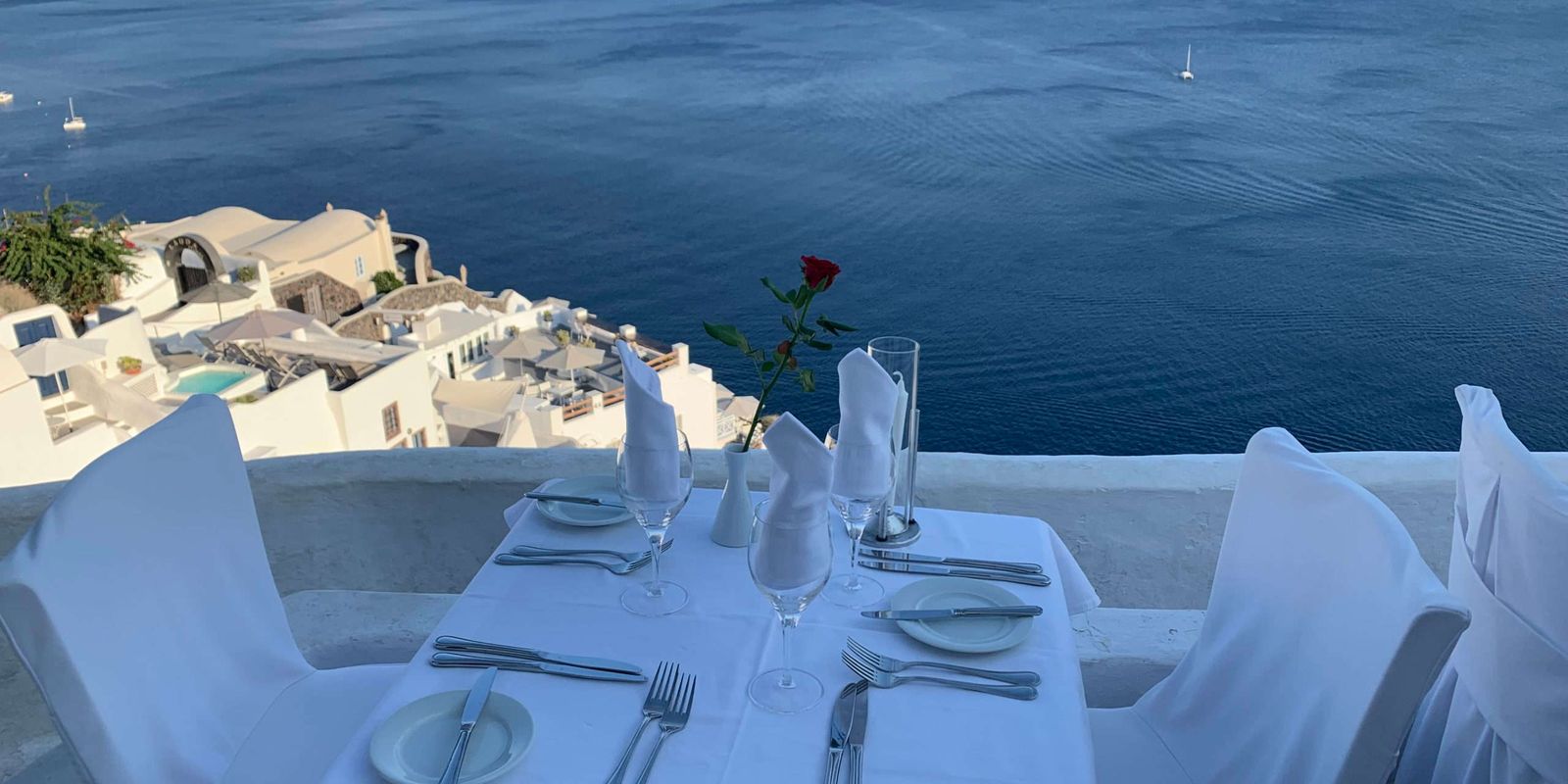 В ресторане Ambrosia вы сможете насладиться ужином при свечах на панорамной террасе с видом на знаменитую Кальдеру или поужинать в одном из двух крытых залов, наполненных антиквариатами предметами.