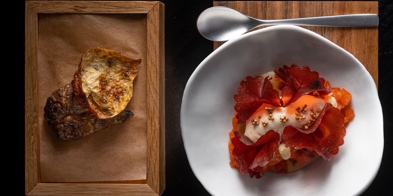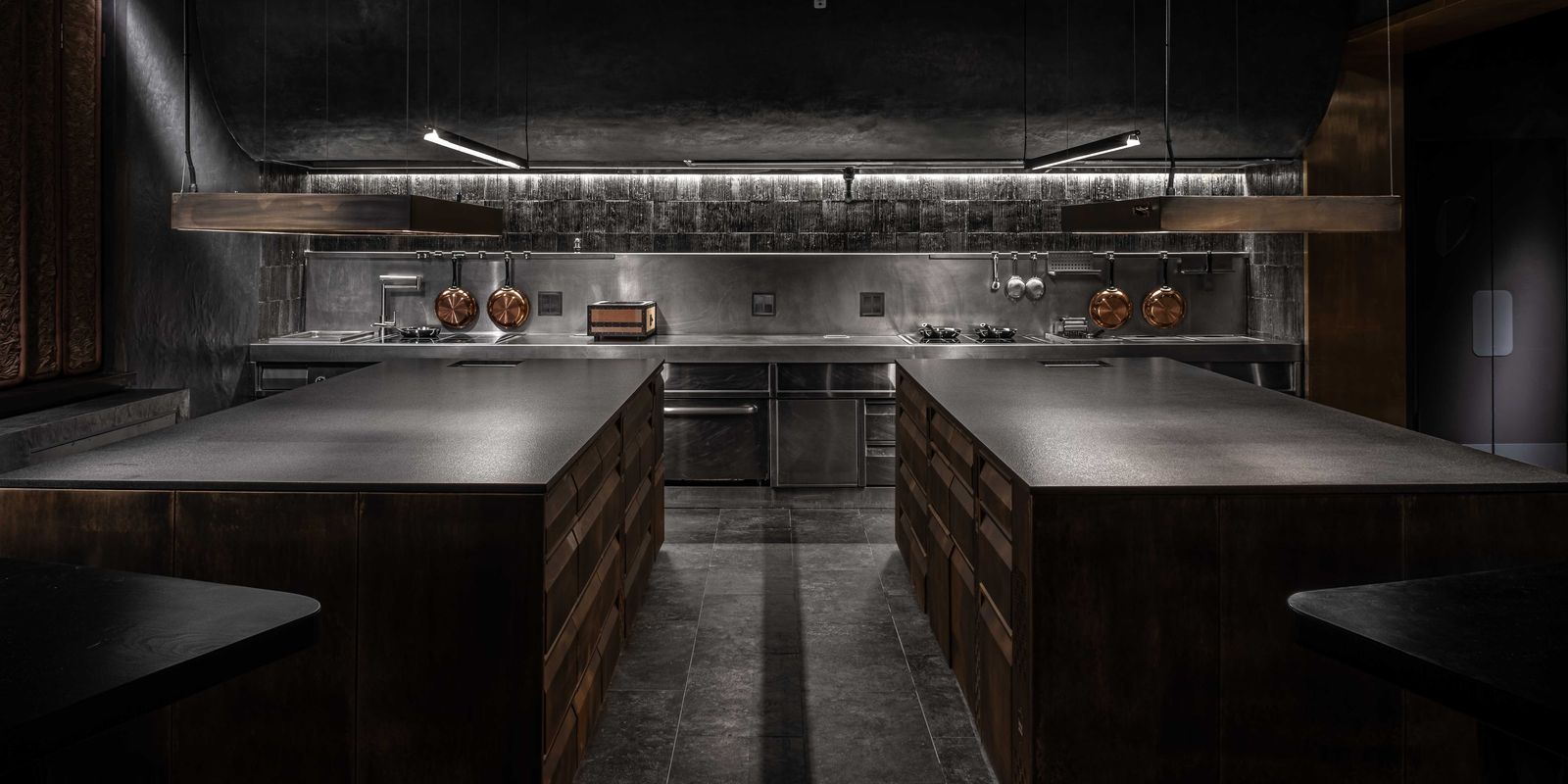 На первом этаже разместился chef’s table, на втором — зал с камином и меню à la carte. Даже музыка на двух этажах разная; та, которая для первого, написана специально для проекта.