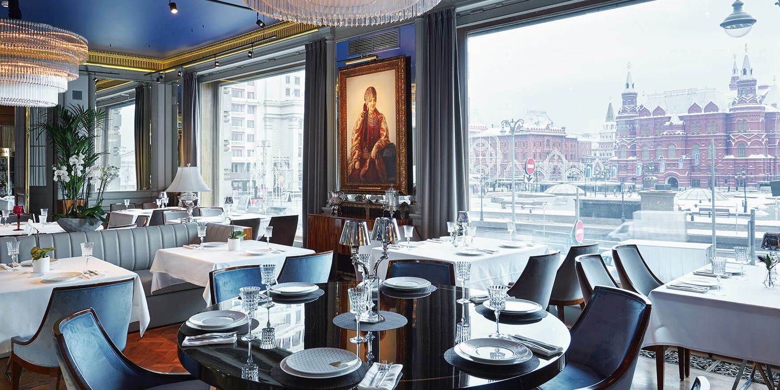 В уникальном меню — два десятка разновидностей икры, российские деликатесы, изящная и остроумная версия русской кухни. Заведение предлагает гостям одну из самых больших в мире водочных карт, все доступные в России сорта шампанского, стильный интерьер, фантастический вид на Красную площадь — и при этом разумные цены.
