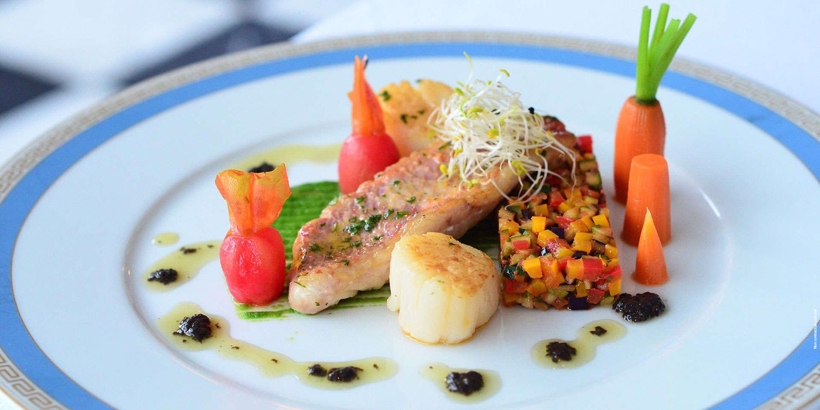 Популярности заведения способствует завидная локация на холеных территориях исторического поместья, где сейчас принимает своих гостей 5* отель Maritim — можно устроиться в элегантном зале с французскими окнами в пол или в саду под фруктовыми деревьями среди цветов.