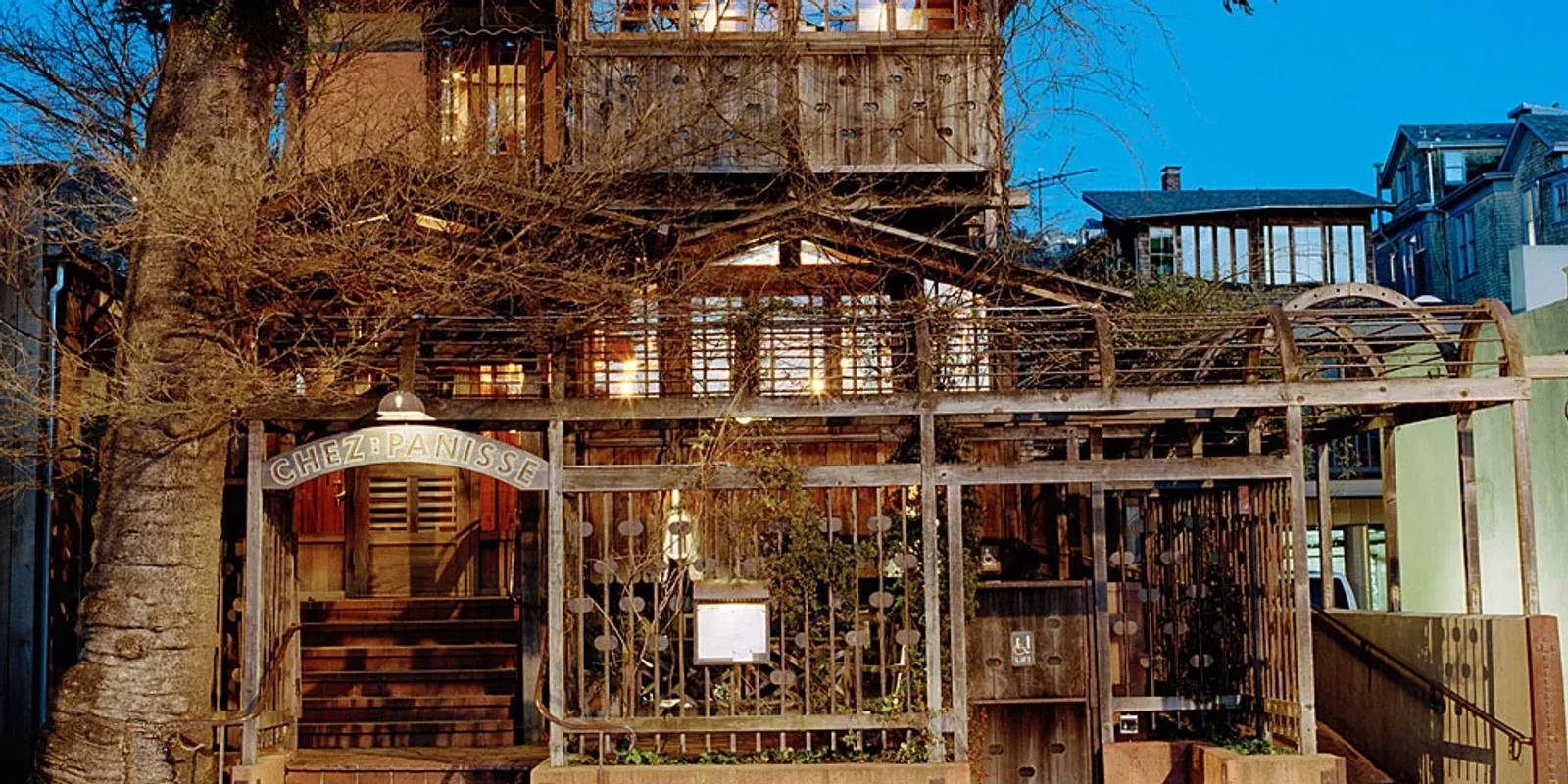 Бунгало Элис Уотерс Chez Panisse — это легендарное место и храм калифорнийской кухни в районе залива. Талантливая команда шеф-поваров творит здесь свое волшебство на сверкающей открытой кухне, расположенной в самом конце столовой и оснащенной дровяной печью.