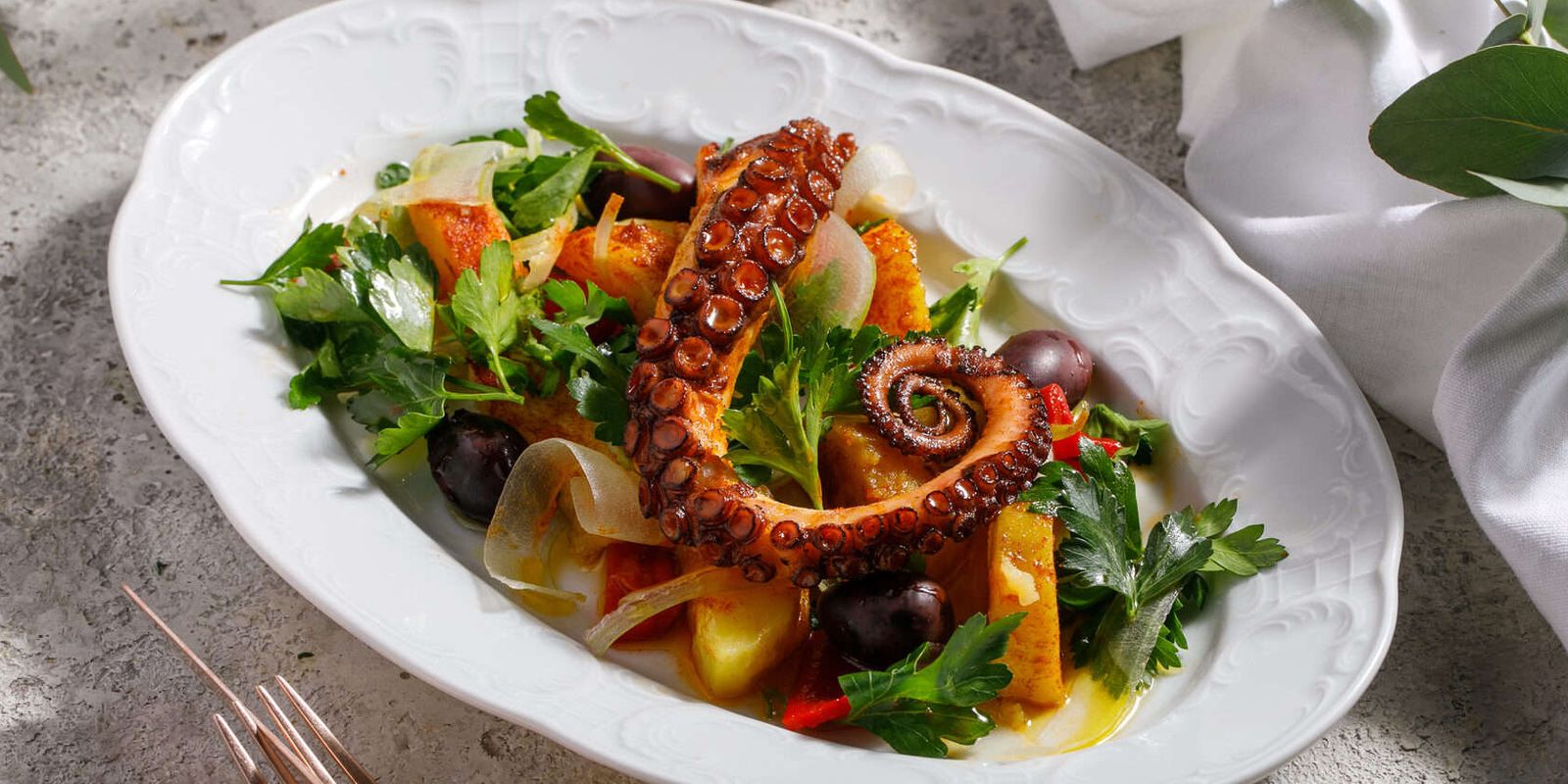 В меню шеф-повара Леонида Иванова собраны гастрономические традиции Италии, Франции, Турции и Греции: целая энциклопедия мезе, тартар из говядины с хариссой, греческий суп факес, бульон с перепелкой, свежеиспеченная лепешка пиде, паста мальтальяти с лангустинами и др. Отдельного упоминания заслуживают здешние завтраки: нарядные лепешки с разными топпингами, греческий омлет с оливками, фетой и томатами, куриные колбаски по-гречески с йогуртом, хариссой и свежей зеленью, а на сладкое — манго и мед в сотах.