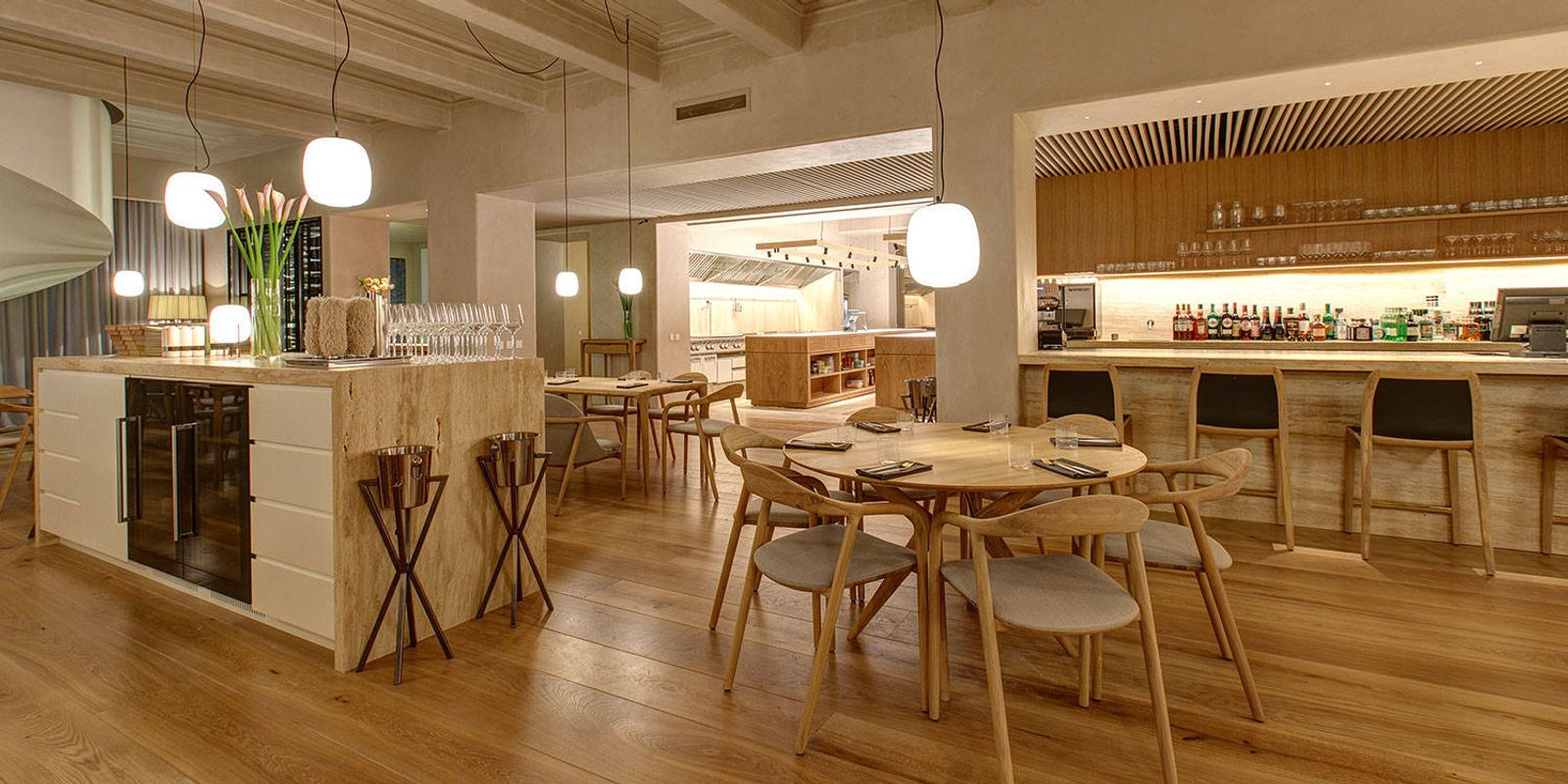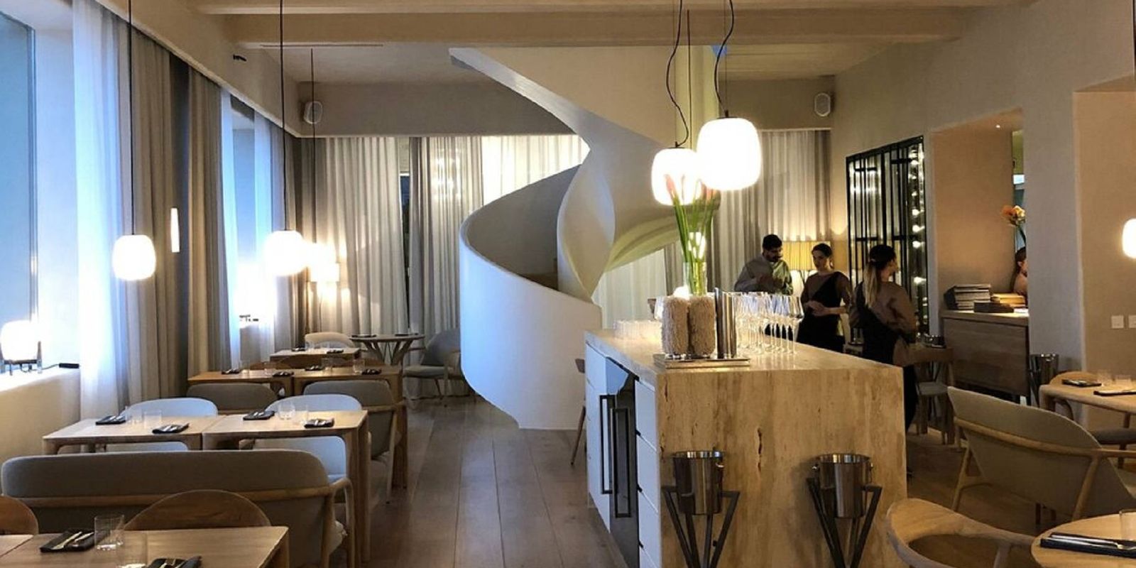 Интерьер Harvest подхватывает основную идею: натуральные материалы, максимум дневного cвета. Дизайнер Алексей Пенюк создал образ визуально простой и понятный: большие окна, закрученная идеальной спиралью лестница на второй этаж, открытая, выполненная в светлом дереве кухня.