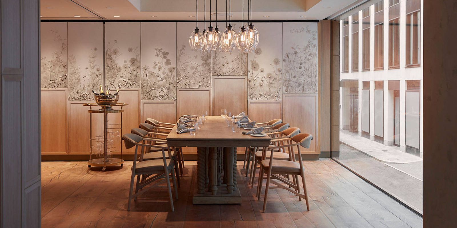 Концепция заведения выстроена на авторских рецептах мишленовского повара Олли Дабу и винной коллекции магазина Hedonism Wines, которая насчитывает 6800 наименований вин.